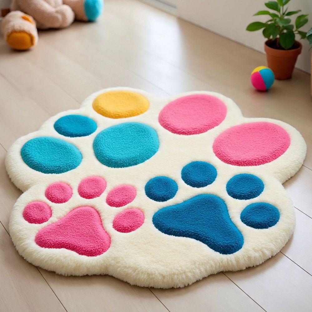 The Playful Paw Print design is striking, crafted from pure wool for a statement rug that enriches any space.