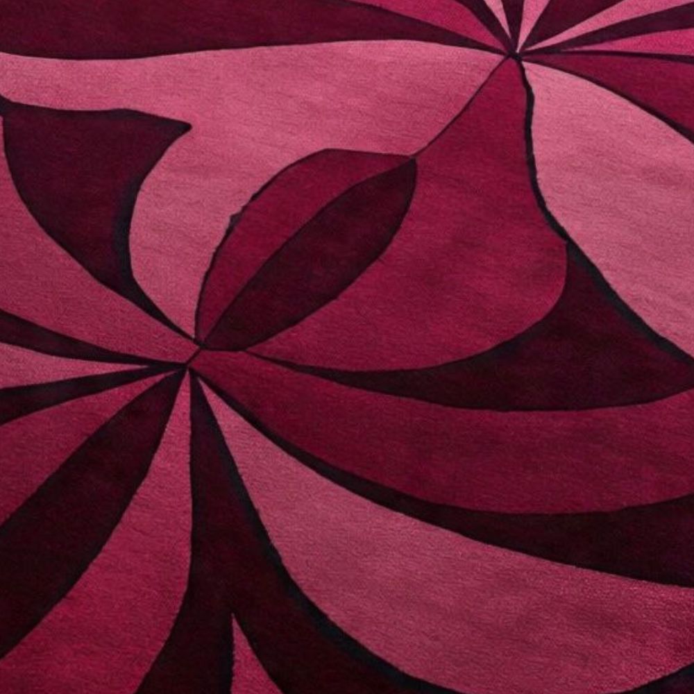 The Purple Petal Swirl design is striking, crafted from pure wool for a statement rug that enriches any space.