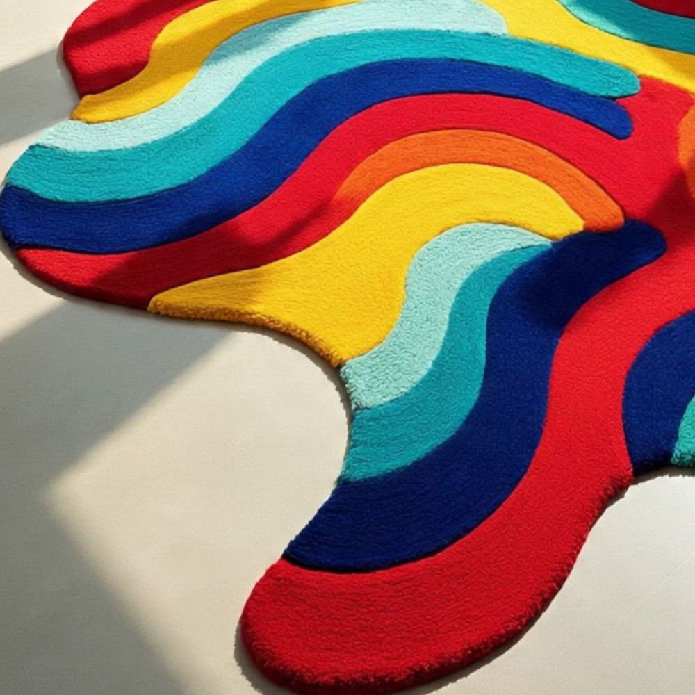 Versatile Uses & Placement for Rainbow Wave Blob Rug