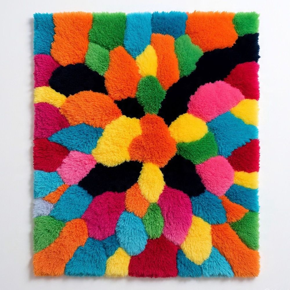 The Vibrant Petal Patch design is playful, crafted from pure wool for a statement rug that enriches any space.