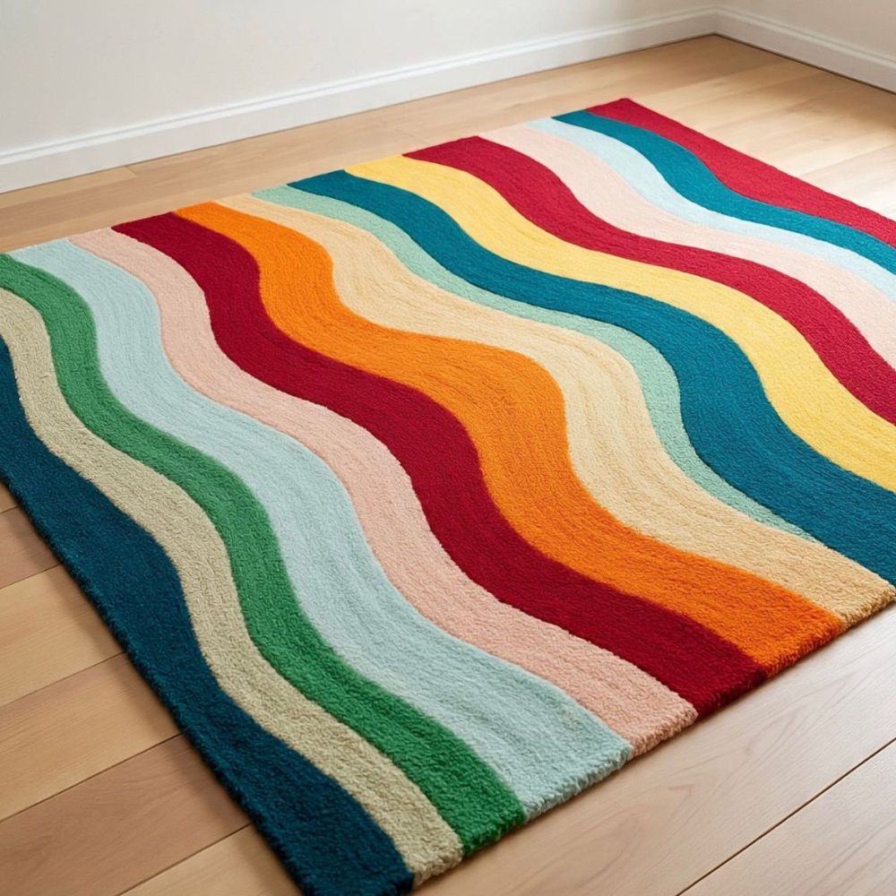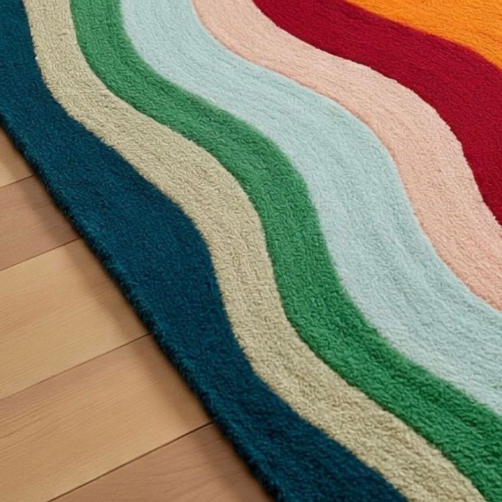 Versatile Uses & Placement for Wavy Rainbow Stripe Rug