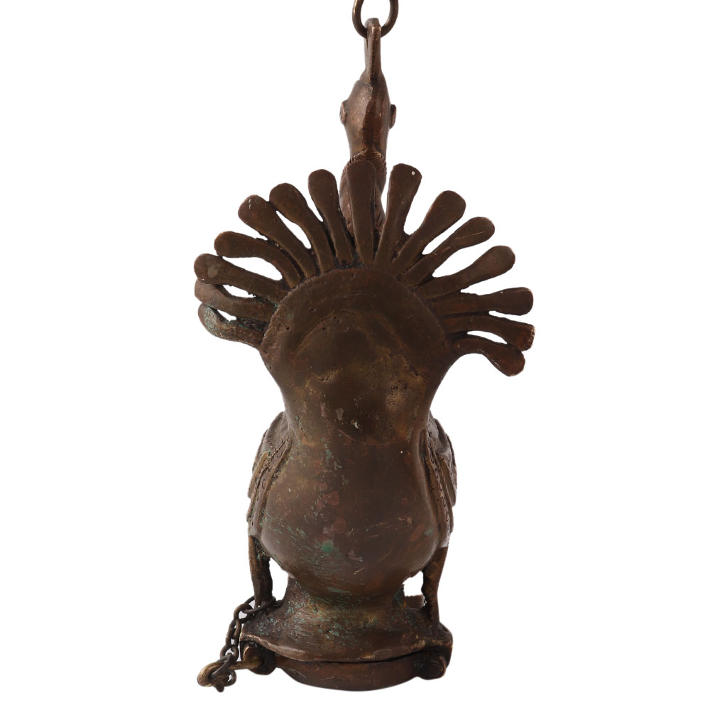 A brilliant peacock lamp with a chain to hang in your prayer room or on your patio to add charm to your home decor. This elegant lamp is carved from brass in South Indian art and adds an aesthetic look to your home, office and restaurant. 3 Jyots can be lit simultaneously with mustard oil or desi ghee and the cotton wick. It is engraved with beautiful designs which makes it an eye catcher for your guests. Hang it in your prayer room or use it in spiritual places as an arti lamp. A perfect gift for New Year, spiritual occasions, birthday or housewarming for your friends, family and relatives.