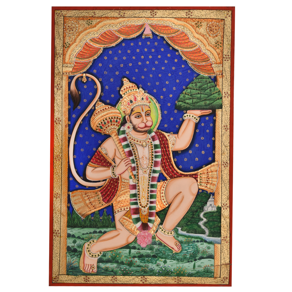 Hanuan Tanjore painting with sanjeevani in his hand. Made on board.