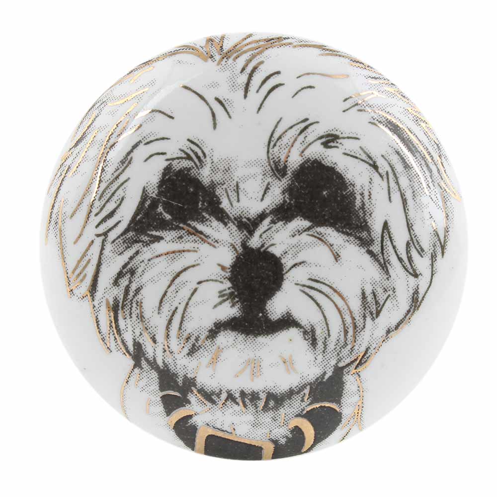 Havanese Dog Face Golden pattern Ceramic Wine Bottle Stopper. Zinc Alloy Wine Bottle Stopper with Attractive Jute Bag Packaging.