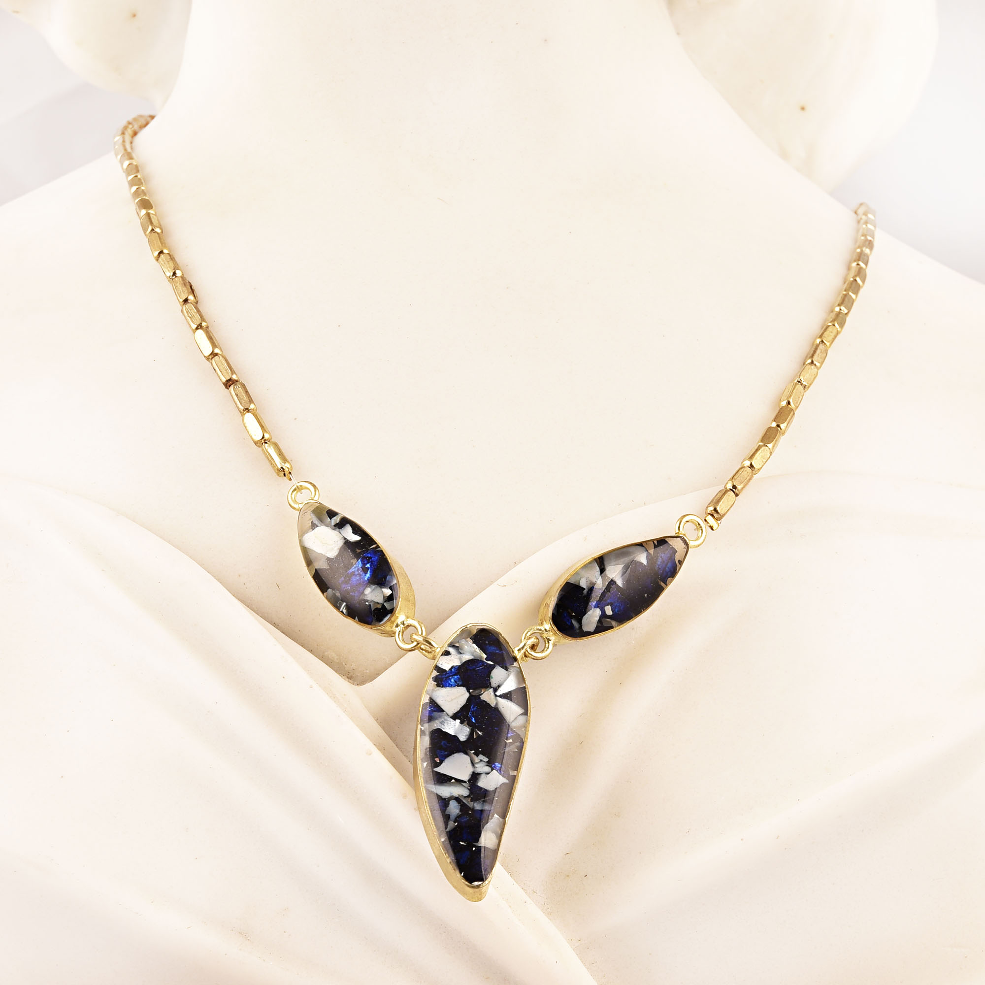 HI Look Navyblue Necklace New Beautiful Jewellery. Resin, Glass in a Brass Chain and Brass Clasp.