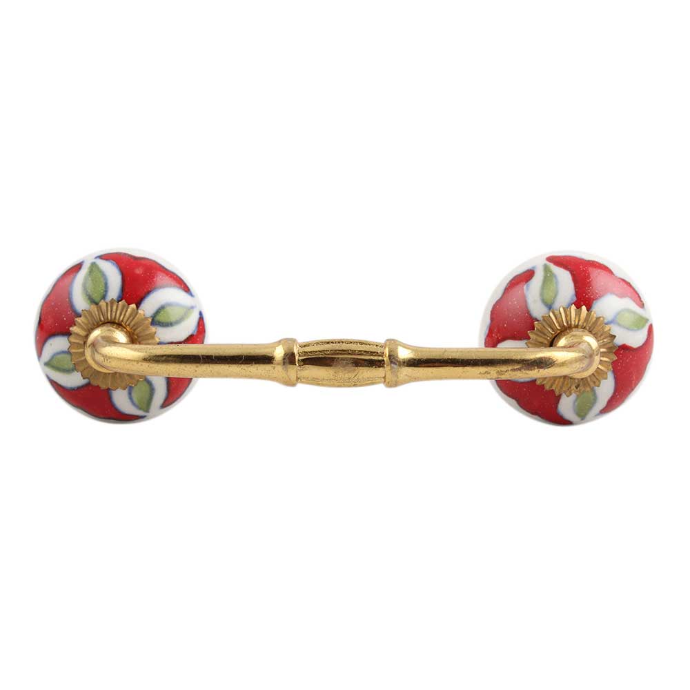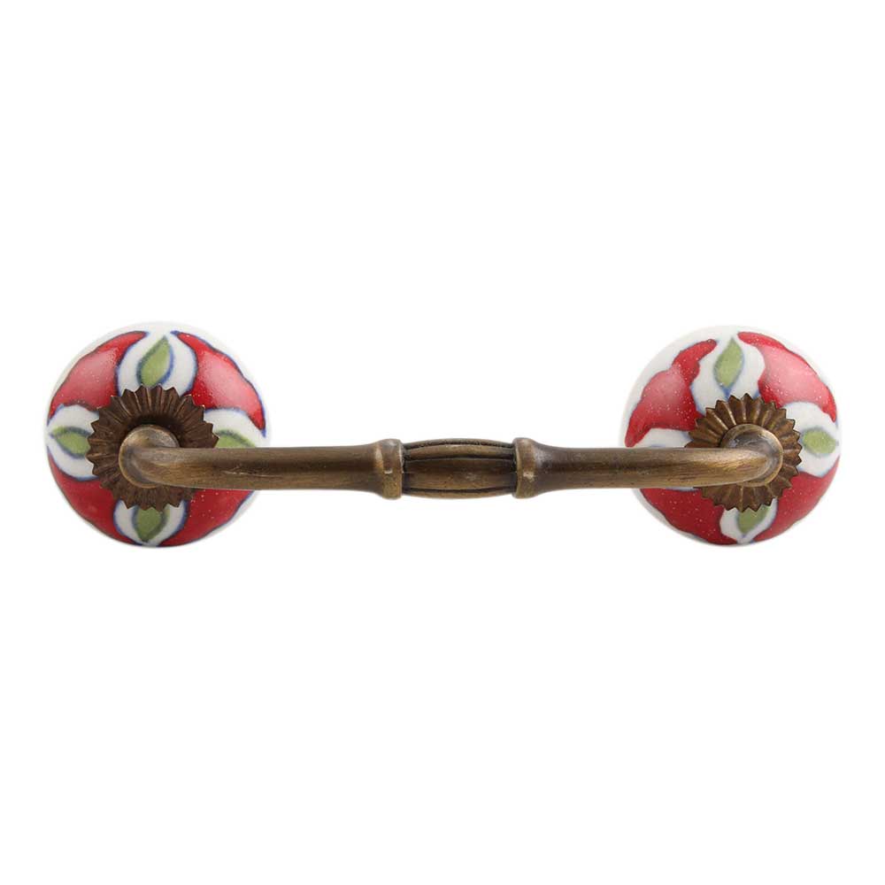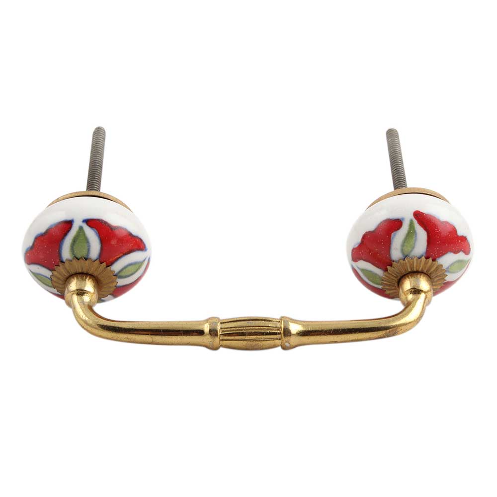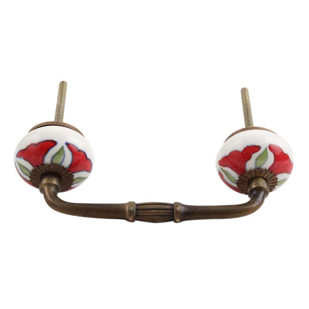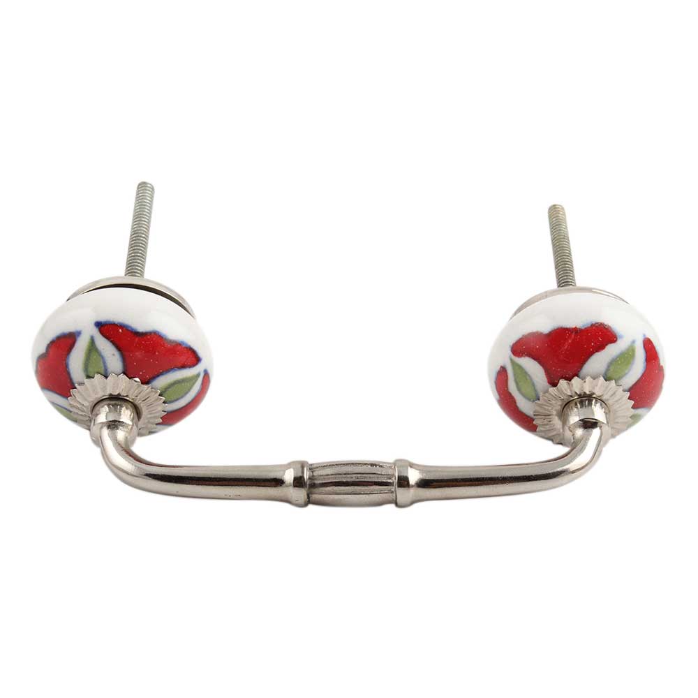 Hibiscus Green Flower Ceramic Bridge Handle. Ideal for Drawer, Dresser, Cabinet, Wardrobe, Cupboard and Almirah.