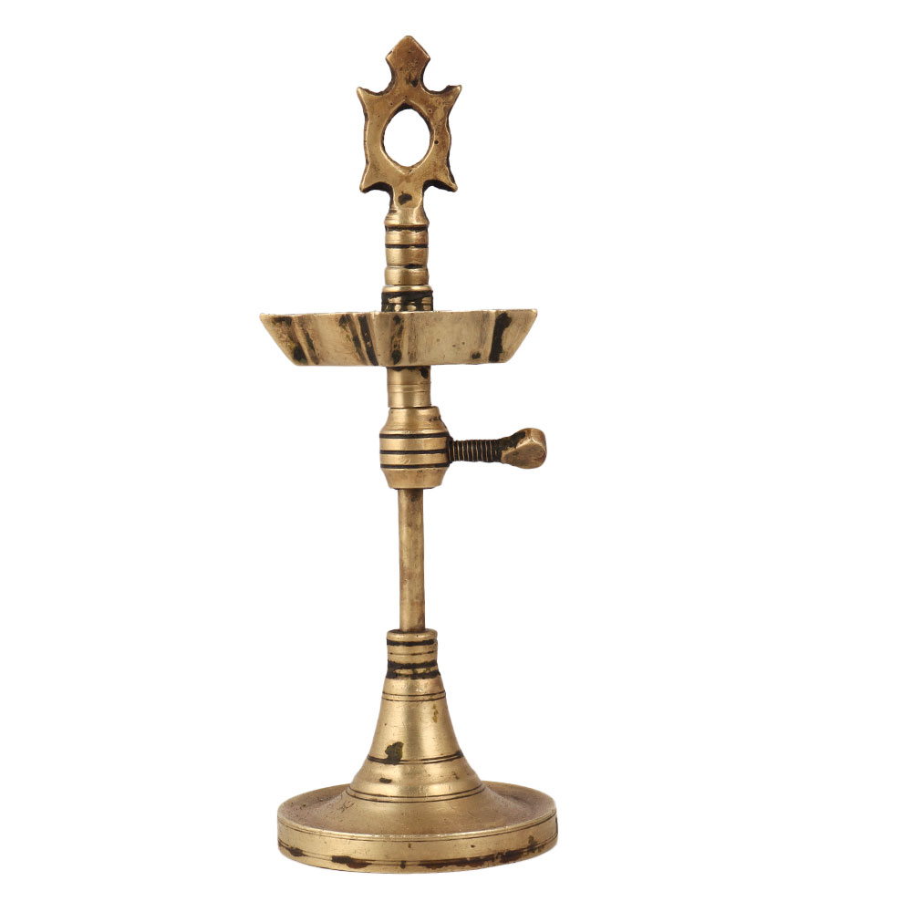 Buy a Brass Aarti Oil Lamp with 5 Jyots online which is a stunning piece that embodies the essence of traditional Indian culture. Crafted with meticulous attention to detail by skilled Indian artisans, this lamp is a testament to their craftsmanship and expertise. This remarkable oil lamp is designed to hold five jyots, allowing you to illuminate multiple wicks simultaneously. It can be filled with either mustard oil or desi ghee, creating a warm and inviting glow that spreads serenity and positive energy in any setting. The lamp's antique brown finish and high-quality brass construction make it a captivating decorative item for temples, homes, offices, or even museum displays. Its adjustable height adds versatility, enabling you to create the perfect ambiance for special or auspicious occasions. Beyond its visual appeal, the lamp holds significant cultural significance. Whether you choose to keep it for yourself or gift it to loved ones, this Brass Oil Lamp with 5 Jyots is a symbol of tradition, spirituality, and beauty, making it an incredible addition to any space or an unforgettable gift for special festive moments.