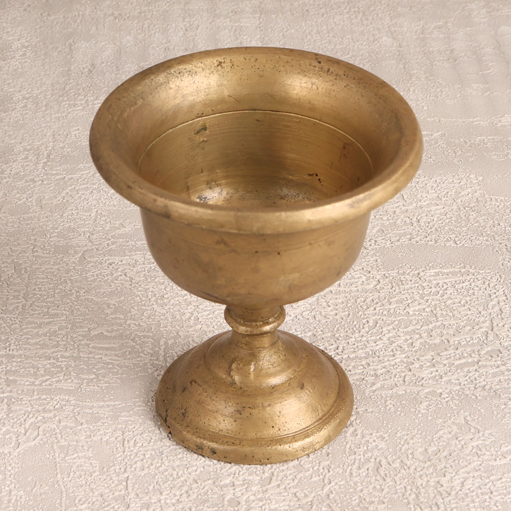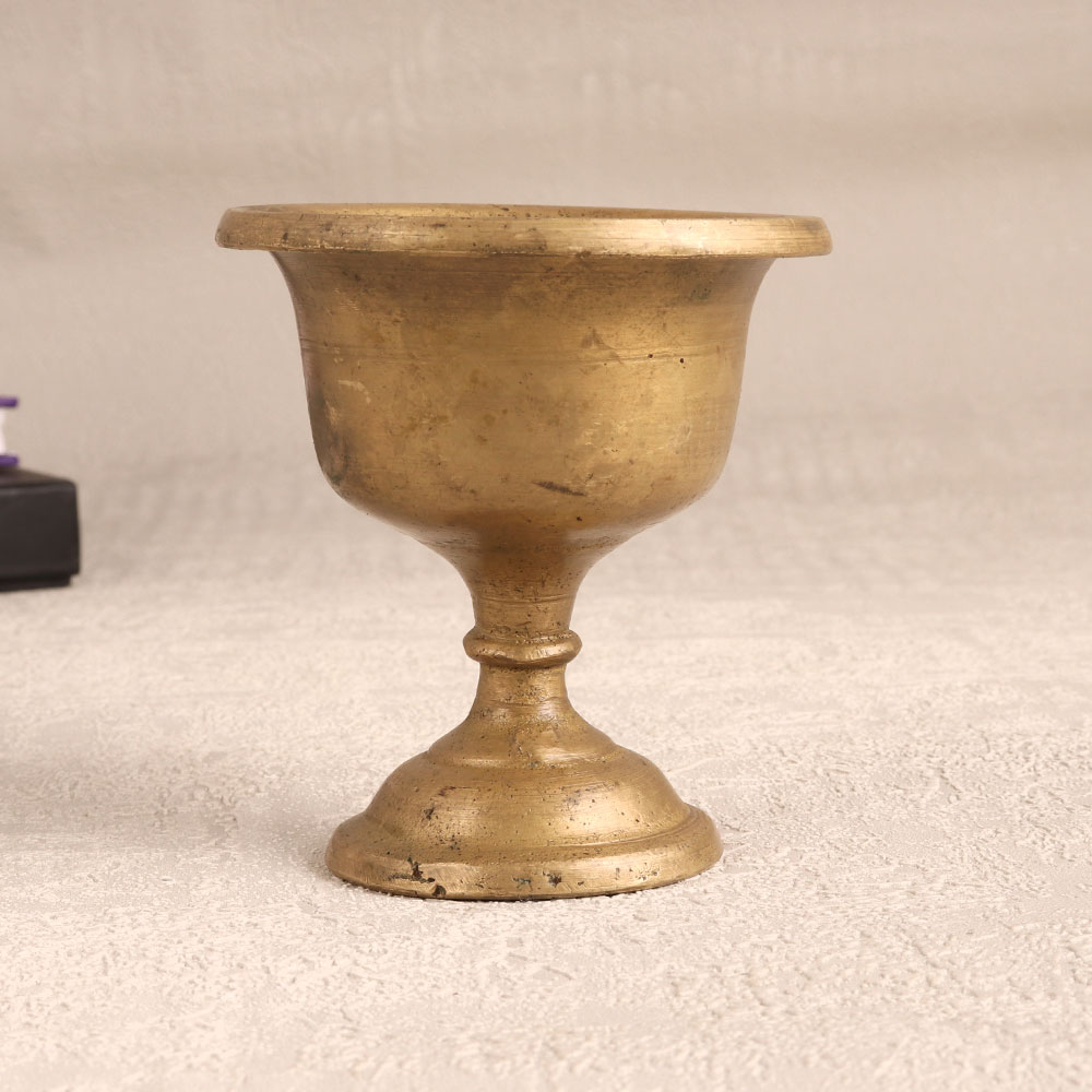 Buy a Vintage Brass Holy Kumkum Cup online from our website and get a hassle free delivery right at your doorstep. Handmade by highly talented Indian artisans in the time-honoured South Indian art tradition, this cup boasts a rich antique brown finish that exudes timeless elegance. Crafted from high-quality brass, it not only stands as a testament to the artisan's craftsmanship but also adds a touch of tradition and splendour to your surroundings. This versatile piece serves a dual purpose - it is perfect for prayer, as it can hold kumkum, tilak, or bindi during your devotional moments. Additionally, it makes for a stunning decorative item that can grace the ambiance of your home, office, restaurant, hotel, or cafe prayer room. Whether adorning your sacred space or enhancing your interior decor, this cup adds a touch of heritage and spirituality to any setting. A thoughtful and meaningful gift, this Vintage Brass Holy Kumkum Cup is an ideal choice for special, festive, or auspicious occasions.