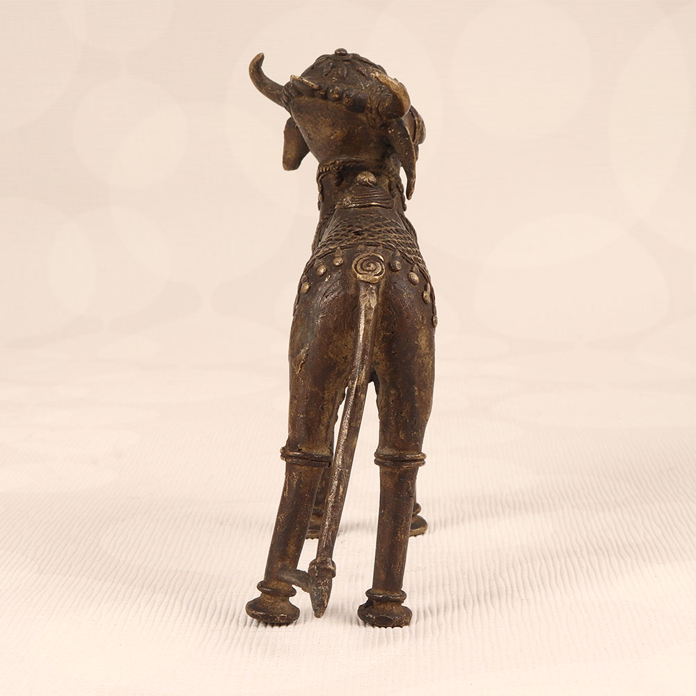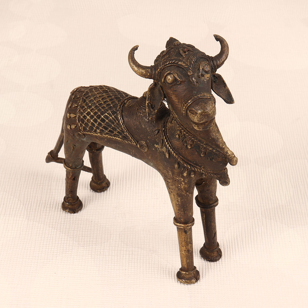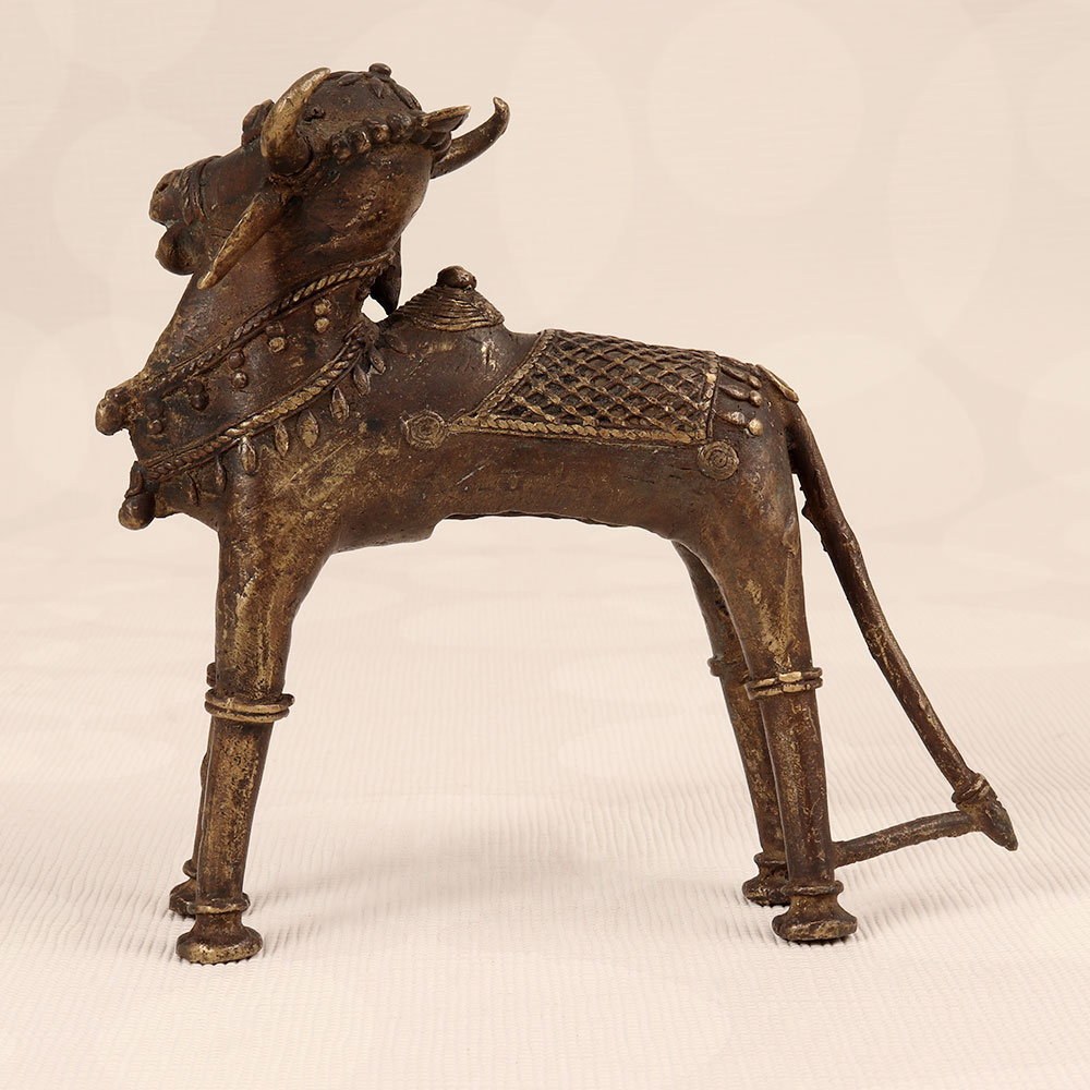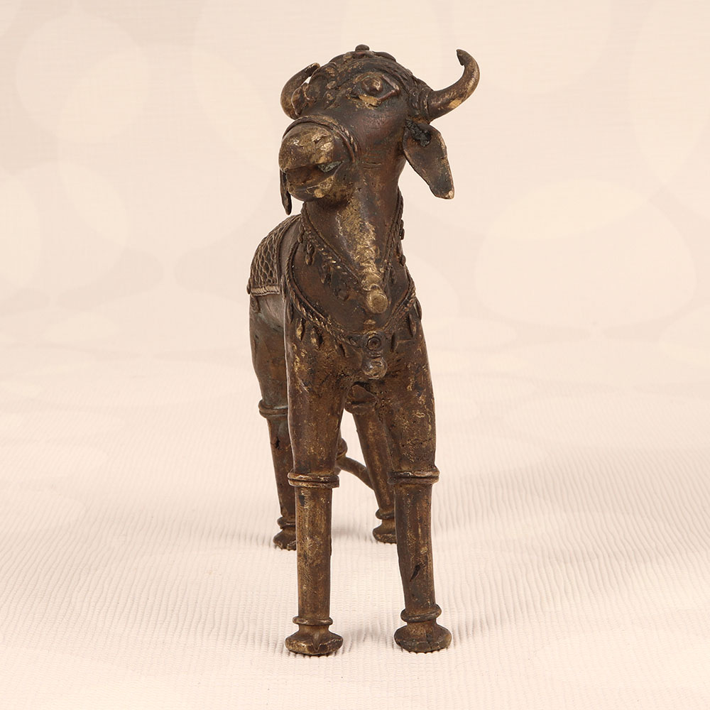 Immerse your space in divine charm with our Vintage Brass Nandi Statue that is a masterpiece crafted by highly talented Indian artisans in the ancient Tribal Art tradition. This exquisite representation of Nandi, the revered vahana (vehicle) of Lord Shiva, captures the essence of spirituality with its timeless design and dark finish. Handmade from high-quality brass, each detail reflects the craftsmanship passed down through generations. Ideal for adorning your home, office, restaurant, hotel, or cafe, this sacred statue seamlessly blends into any space, creating an aura of serenity and devotion. Perfect for prayer rooms and as a distinctive decor element, the Vintage Brass Nandi Statue is a symbol of timeless beauty and cultural heritage. Enhance your vintage collection or present this intricately designed piece as a thoughtful gift to your family, friends or relatives on special, festive, or auspicious occasions.
