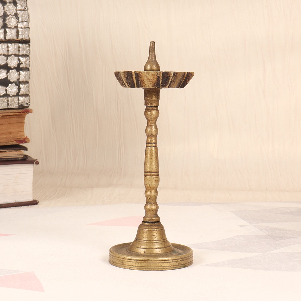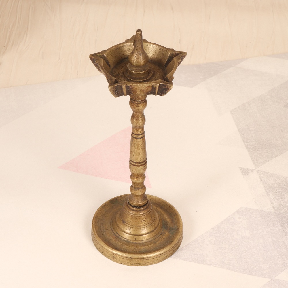 Elevate your space with the timeless elegance of our Vintage Brass Oil Lamp, a stunning piece of South Indian artistry that will captivate your senses. Crafted with meticulous attention to detail, this mesmerizing lamp is a true testament to the rich cultural heritage of the region. Imagine the gentle flickering of five flames, casting a soft, inviting light that soothes the senses and captivates the soul. This brass oil lamp is more than just a source of illumination – it's a window to a bygone era, a reminder of the simple pleasures that can be found in the quiet moments of life. Whether you're seeking to create a cozy, contemplative space for your meditation practice, set the stage for a romantic evening, or simply add a touch of timeless elegance to your home, this brass oil lamp is the perfect companion. Its versatile design allows it to seamlessly blend with a variety of decor styles, from rustic farmhouse to modern minimalist. Embrace the captivating glow of this South Indian-inspired masterpiece and experience the transformative power of light.