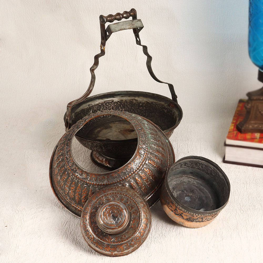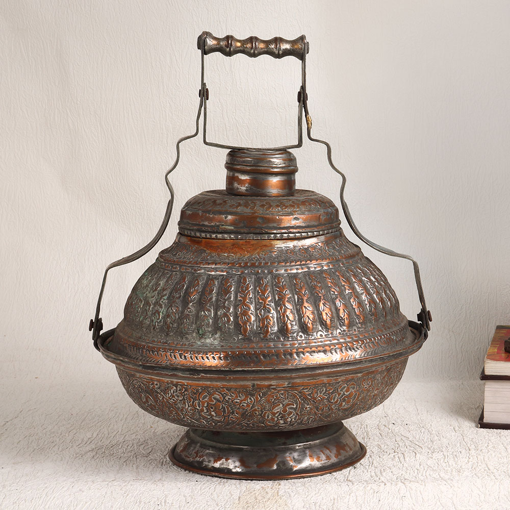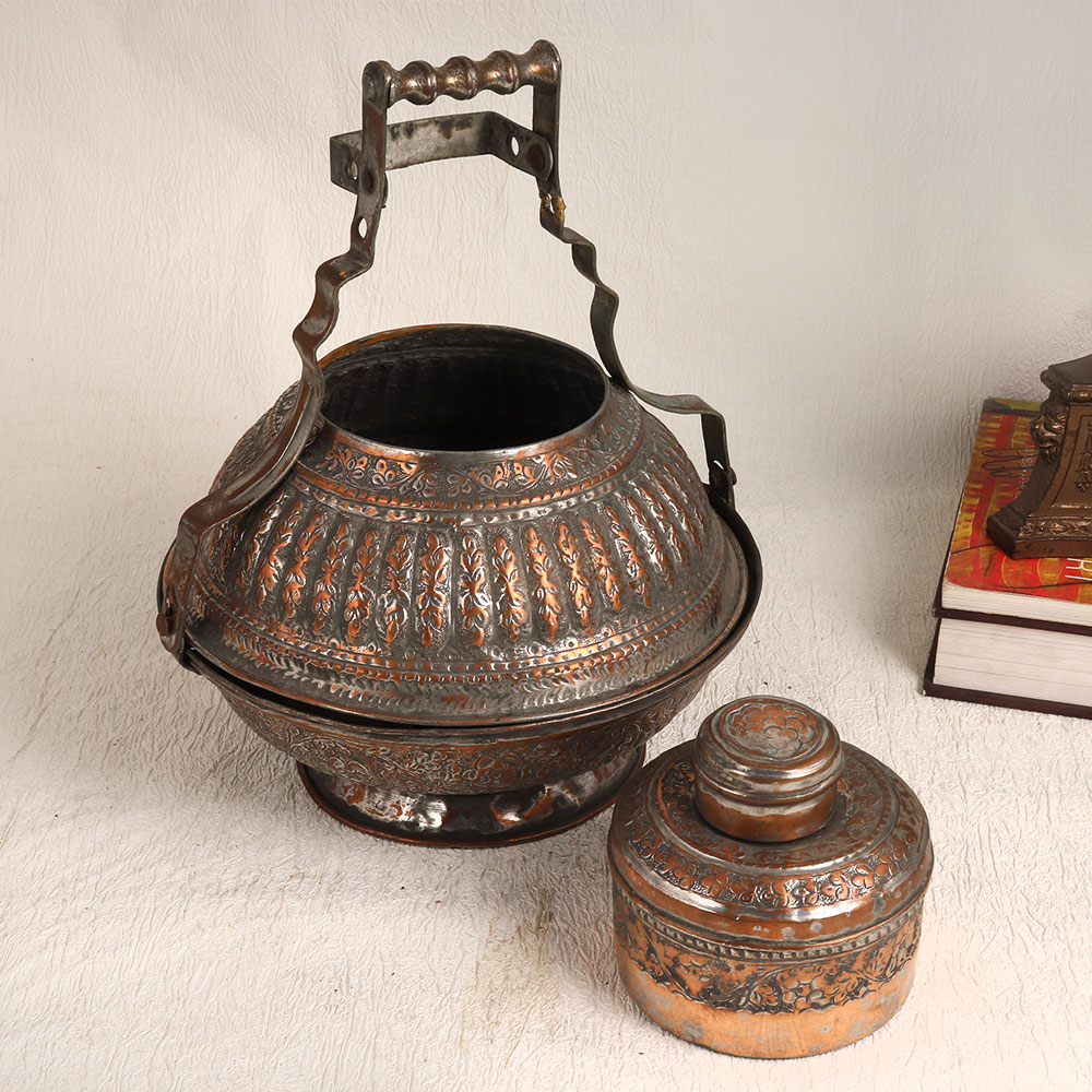 Buy a Vintage Copper Unique Box with a beautifully carved handle and an antique brown finish. Handmade by skilled Indian artisans, this piece is a testament to the artistry of the Islamic tradition. Crafted from high-quality copper, this vintage box embodies the intricate craftsmanship that has been passed down through generations. While it's a stunning work of art, we recommend using it primarily for decorative purposes due to its vintage nature. This remarkable piece will be a showstopper in any setting, whether it's your home, office, restaurant, hotel, cafe, or shop. The ornate carvings and warm, antique brown finish add a touch of opulence to any space, making it a standout conversation piece. Ideal for collectors of vintage treasures, this box is a valuable addition to your collection. Furthermore, it makes for a thoughtful and memorable gift for your family, friends or relatives on special, festive, or auspicious occasions.