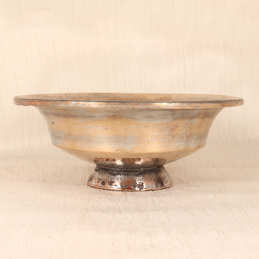 Elevate your fruit display and infuse your home with the captivating beauty of Islamic Art with this exquisite copper fruit bowl. Crafted by skilled artisans, this bowl features a shiny plain brown finish that pays homage to the timeless elegance of this revered artistic tradition. Generously sized, this copper bowl allows you to beautifully arrange and showcase a variety of fresh fruits, creating a stunning centerpiece that will instantly elevate the ambiance of any space. Whether placed on your kitchen counter, dining table, or entryway console, this remarkable piece will infuse your home with a sense of global sophistication and cultural elegance. Designed to withstand the rigors of everyday use, this copper bowl is built to last, ensuring it will remain a cherished fixture in your home for years to come. Its durable construction and tarnish-resistant finish make it a practical and visually stunning choice for any household. For those who appreciate the enduring beauty of Islamic Art and seek to incorporate it into their home decor, this copper fruit bowl is a must-have addition. Embrace the allure of this captivating artistic tradition and elevate your fruit display with this truly remarkable piece.