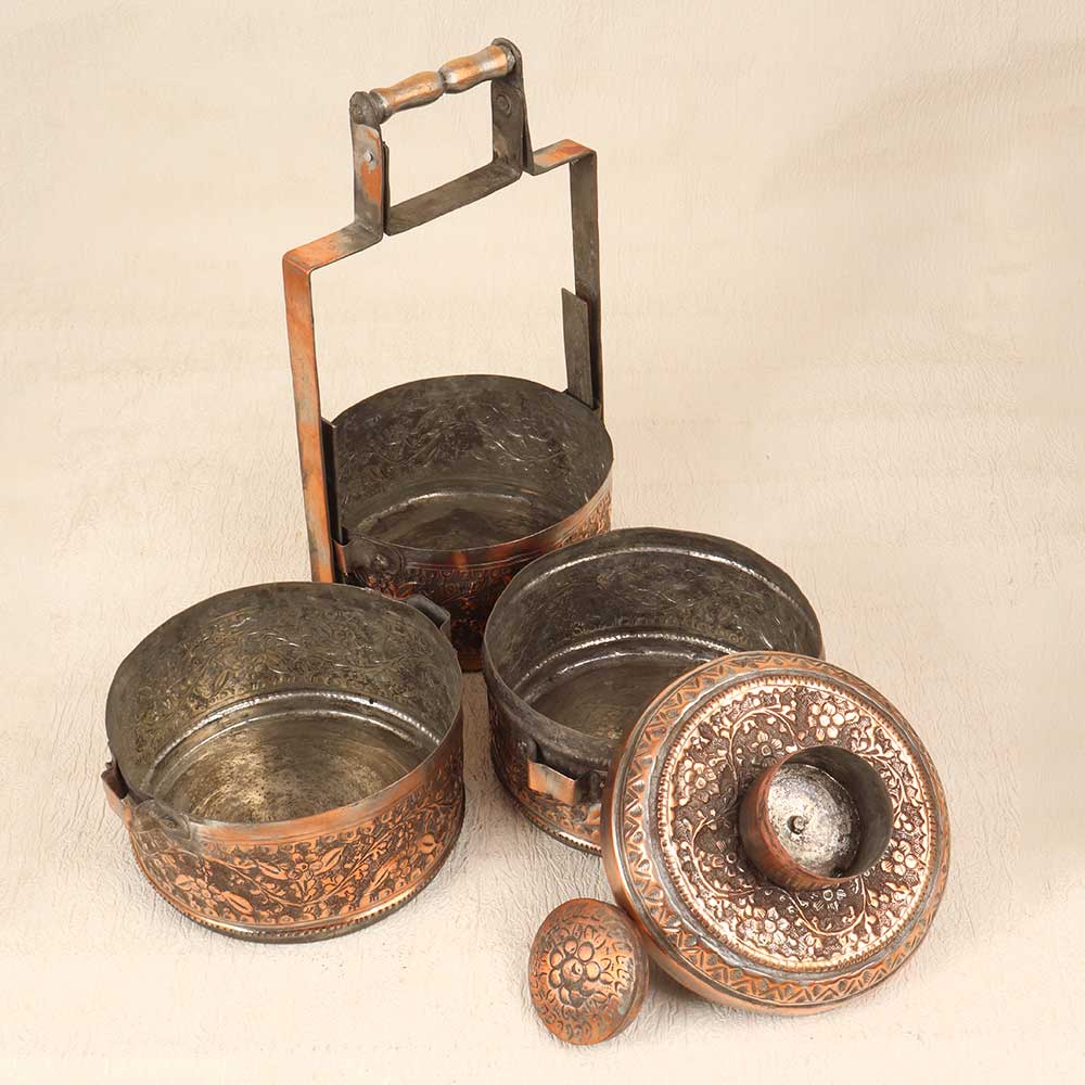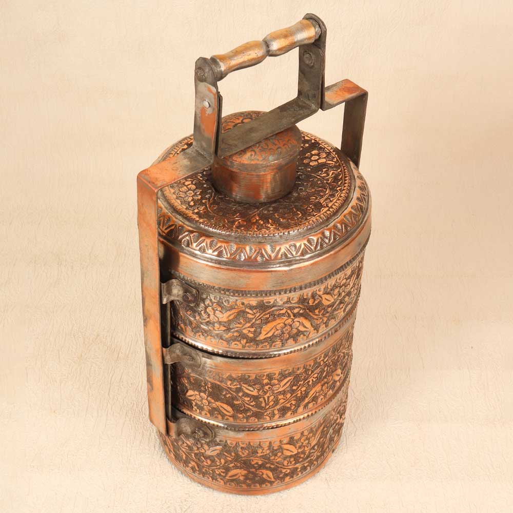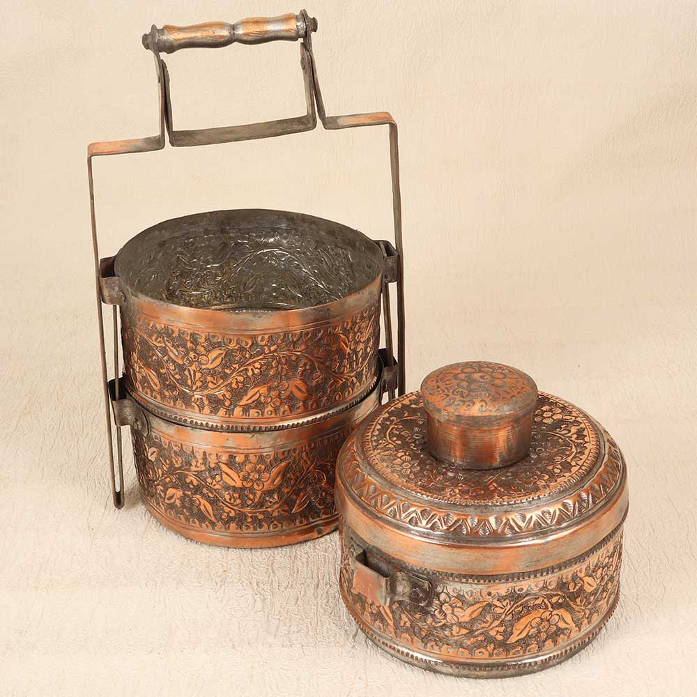 Elevate your collection with this Islamic engraved copper lunch box. The vintage-styled copper box features intricate Islamic art engravings for exotic flair. This copper lunch box stands out with its ornate hand-engraved Islamic art motif adding a touch of exotic flair. The heirloom-quality styling and engraved design give this box vintage appeal with artistic charm that makes your lunch break feel special. Make your collection more interesting with this artistic engraved copper lunch box. The ornate Islamic art motif and vintage copper styling give this box exotic appeal that makes people take notice.