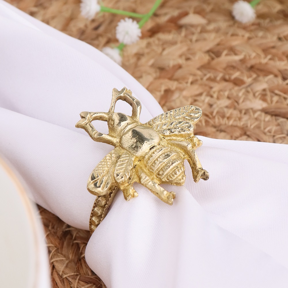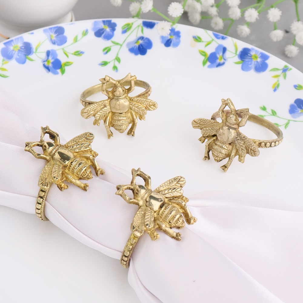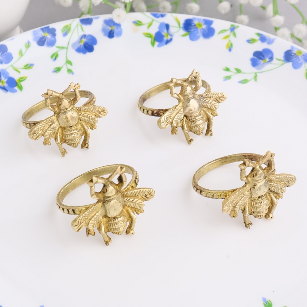Add an elegant touch to your dining experience with our exquisite set of 4 Brass Napkin Rings, adorned with charming Bee motifs. Crafted by talented Indian artisans, each napkin ring is a testament to the rich heritage of craftsmanship and attention to detail. The antique golden finish adds a touch of sophistication, making these napkin rings a perfect complement to any table setting. Handmade from high-quality brass, these napkin rings not only serve as a practical table accessory but also double up as beautiful pieces of art. The Bee design symbolizes wisdom, strength, and good luck, making them a meaningful addition to your dining decor. These versatile napkin rings are perfect for both casual family dinners and formal gatherings. They hold napkins in place, preventing them from slipping off the table and adding an element of finesse to the overall presentation. Beyond their functional use, these brass napkin rings make for a thoughtful and cherished gift for your loved ones. Whether it's a special occasion or a festive celebration, these exquisite napkin rings are a unique and heartfelt present that will be cherished for years to come.