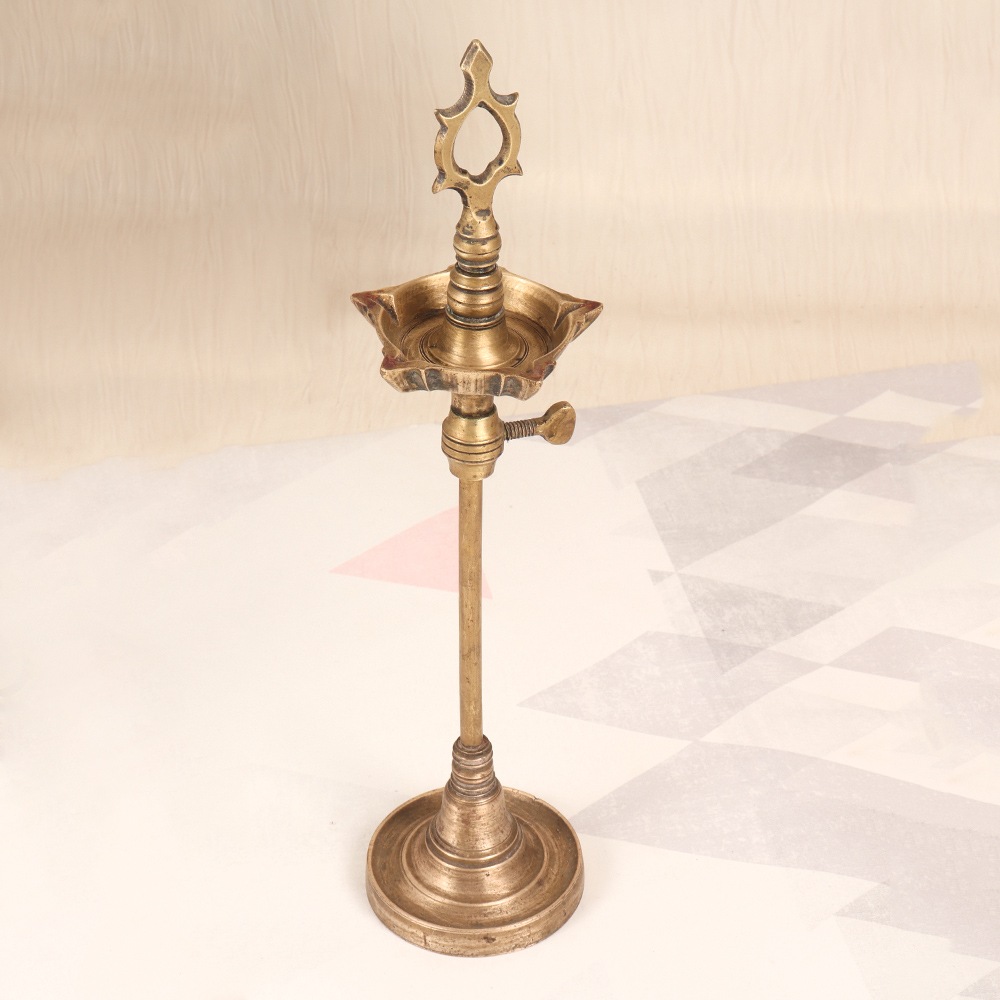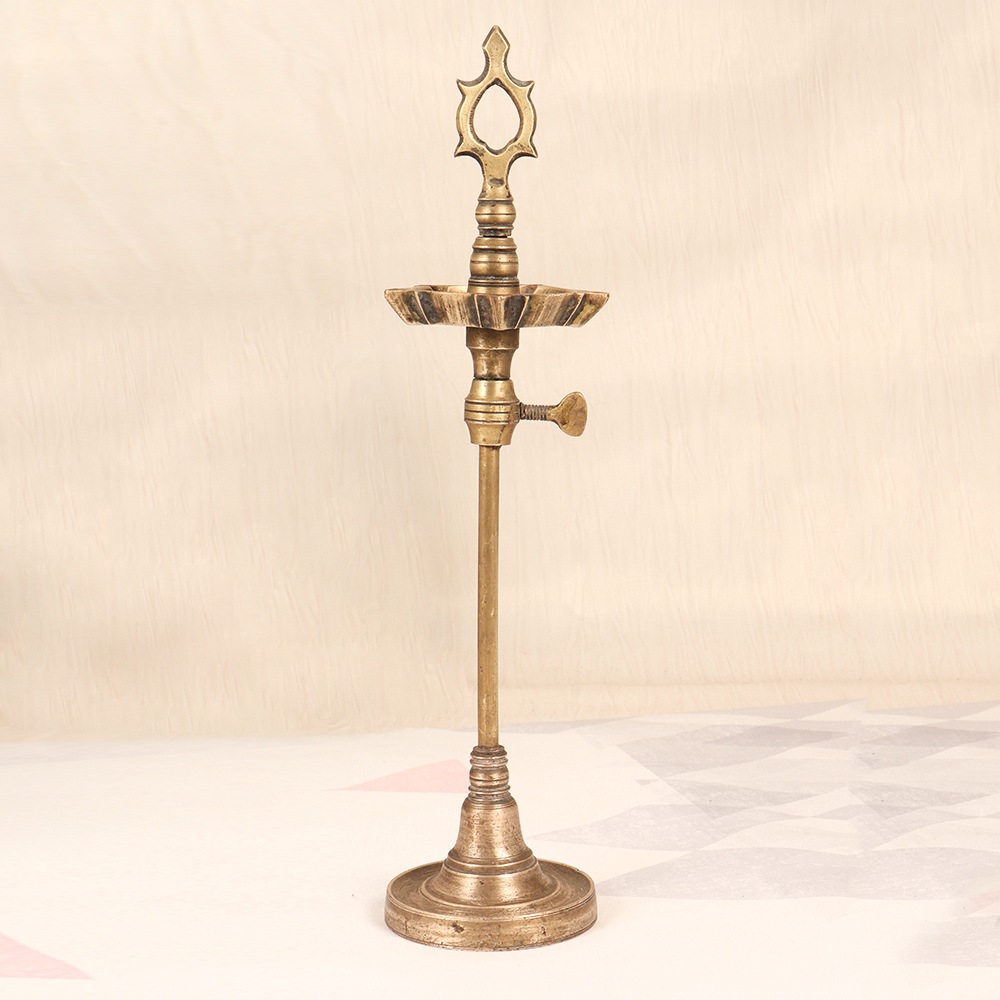 Introducing the Vintage Brass Oil Lamp, a stunning masterpiece that seamlessly blends traditional South Indian artistry with modern functionality. Crafted with meticulous attention to detail, this captivating lamp will elevate your space and transport you to a bygone era. As the soft, flickering light dances across the room, this oil lamp creates a serene, calming ambiance that invites you to slow down, unwind, and savor the moment. Whether you're seeking to infuse your living space with cultural charm, create a cozy and inviting atmosphere, or simply enjoy the timeless allure of a classic oil lamp, this versatile piece is the perfect addition to your abode. Elevate your home decor and immerse yourself in the rich history and artistry that this lamp embodies. Embrace the captivating glow of our Vintage Brass Oil Lamp and let it transport you to a world of timeless elegance and South Indian heritage. Illuminate your world with the enduring beauty of this stunning, functional work of art.
