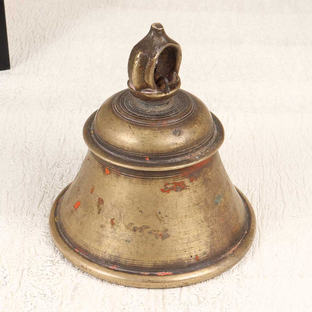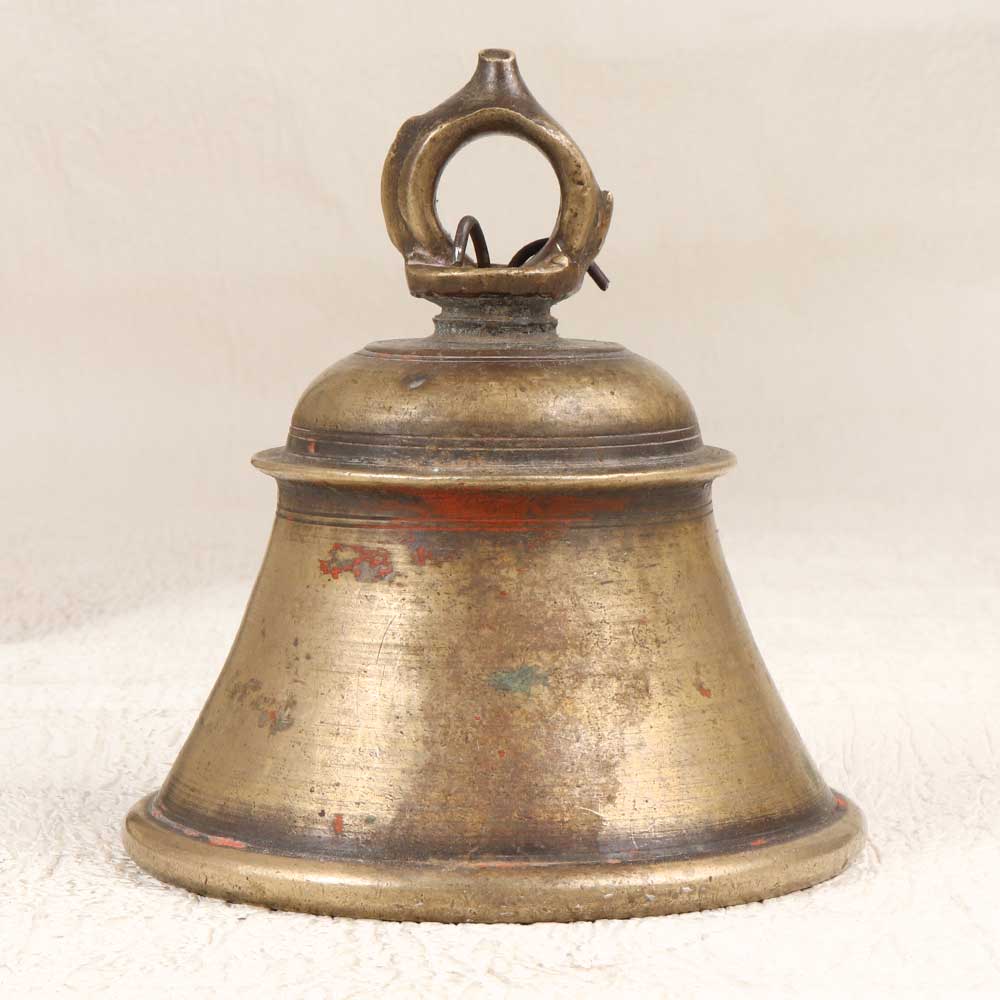 This beautiful bell metal temple bell brings a sense of serenity and calm wherever it's hung. Crafted by skilled artisans in India, it has a classic vintage design that adds rustic charm to any space. The bell metal creates a light, resonant tone that can be used to call people to meditation or prayer. Or let its peaceful chime simply create a relaxing ambiance in your home. The smooth brown patina finish gives it an antique look. With its compact size, this bell is perfect for use in smaller spiritual spaces or personal altars. The included hanging loop also makes the display easy - hang it in your meditation room, by the front door to ward off negative energy, or even in a window to let the breeze cause occasional chimes. Bring a little peace of mind into your day with this vintage Indian bell metal temple bell. It's handcrafted style and melodic tone will have a calming effect wherever you choose to hang it.
