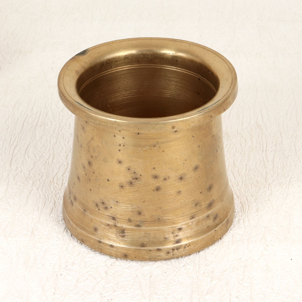 Decorate your living room with this exquisite Vintage Brass Holy Panchpatra Pot that is a timeless masterpiece handcrafted by highly skilled Indian artisans. Made from high-quality brass, its antique brown finish exudes a rustic charm that enhances the sacred ambiance of prayer, rituals, and havans. This meticulously crafted pot serves as a vessel for holding holy water, adding a touch of tradition to your home, office, restaurant, hotel, or cafe prayer room. Beyond its spiritual significance, the pot's versatile design allows it to double as an indoor flower pot, effortlessly blending spirituality with aesthetics. The artisanal charm and authenticity make it a perfect addition to any vintage collection. Moreover, this brass Panchpatra pot makes for a thoughtful and meaningful gift for your loved ones on special, festive, or auspicious occasions, symbolizing the timeless beauty of tradition and spirituality.