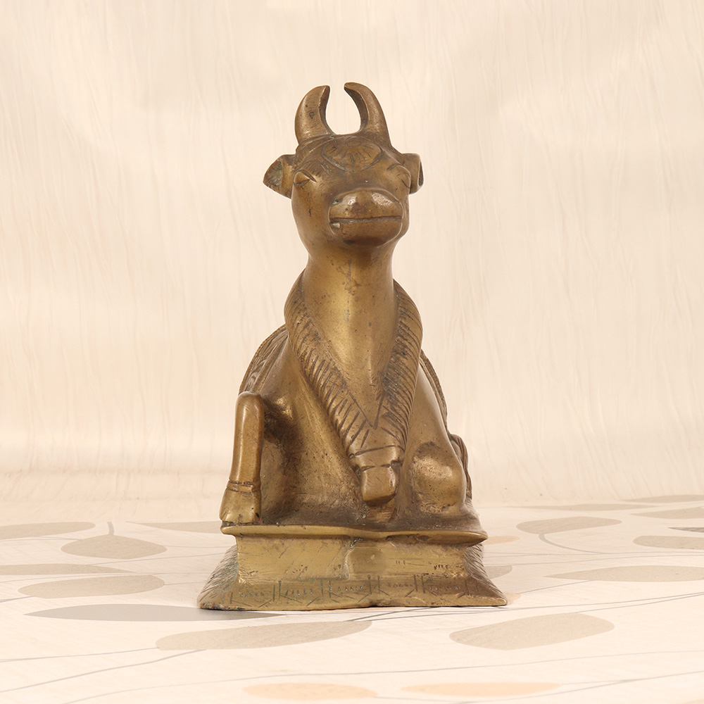 Discover the captivating essence of ancient Himalayan artistry with this exquisite brass Lord Nandi statue. Crafted with meticulous attention to detail, this timeless masterpiece embodies the sacred reverence and spiritual significance of the revered Nandi, the loyal vehicle of the mighty Lord Shiva. Invite the blessings and divine energy of Lord Nandi into your home or sacred space, and let its majestic presence inspire you to cultivate steadfastness, devotion, and protection in your life. This magnificent statue serves as a powerful reminder to embody the unwavering loyalty and strength of the Nandi, the eternal guardian of Lord Shiva. Whether you are a collector of fine art, a devotee seeking a meaningful spiritual centerpiece, or simply someone drawn to the captivating aesthetics of Himalayan culture, this Lord Nandi statue is a must-have addition to your home. Immerse yourself in the captivating energy of this sacred icon and let it guide you on a journey of deeper connection, reverence, and personal growth, elevating your daily experience with the timeless wisdom of the Himalayas.