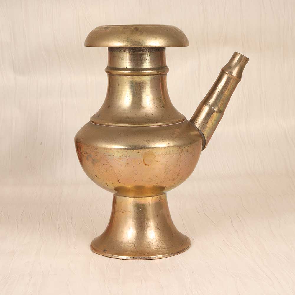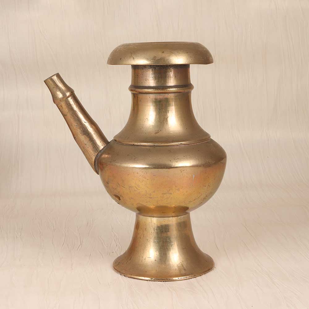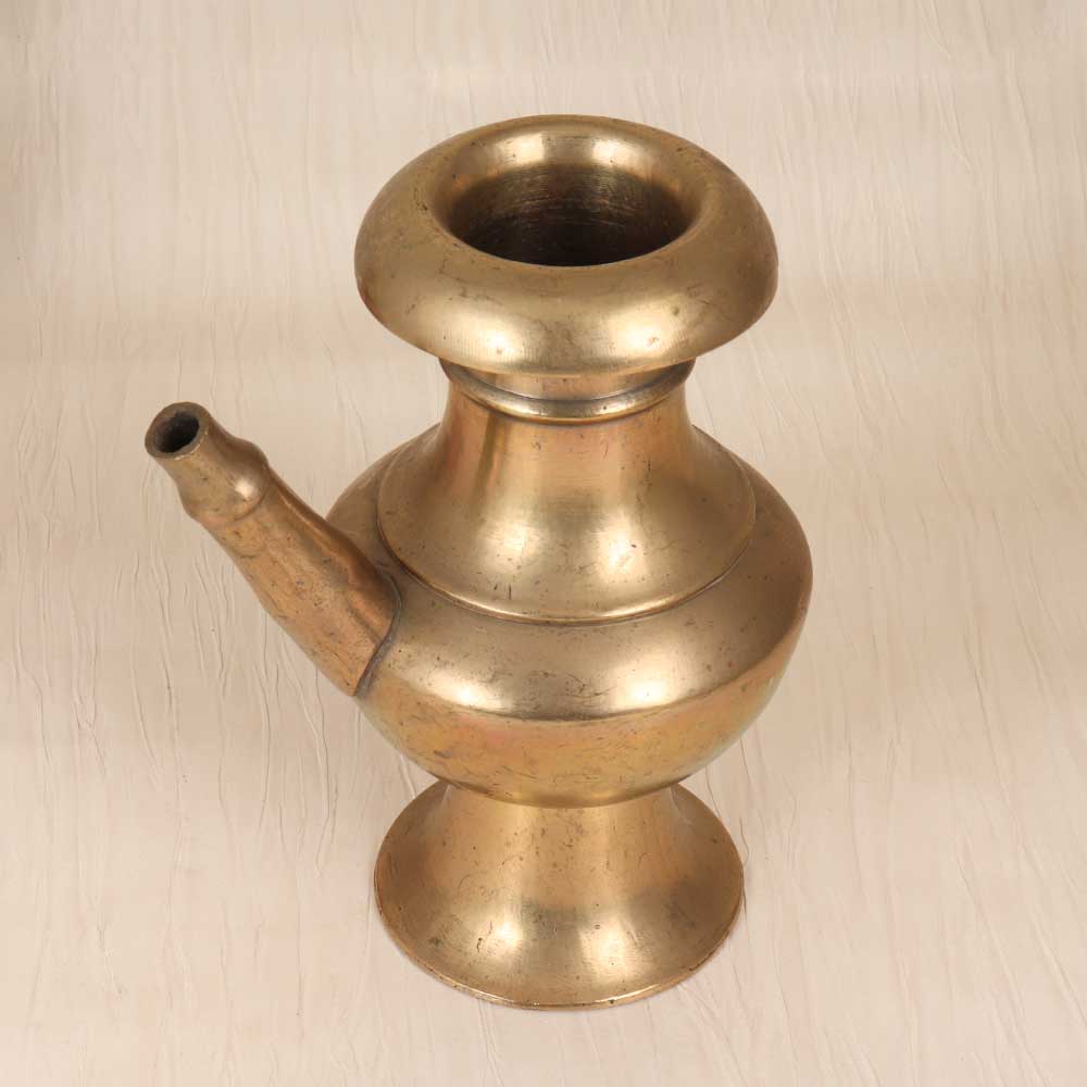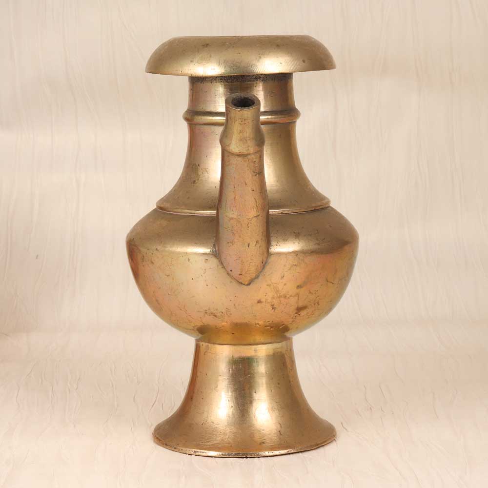 Steep yourself in sacred tradition with this vintage brass holy water pot. In a classic plain brown finish, this elegant pot allows you to neatly pour and store holy water for home blessings and rituals. With its graceful spout and brass antique styling, this pot adds a special touch of tradition to any space. Use it to share holy water with visitors or to bless your home. The vintage look nods to ancient spiritual practices while adding decorative flair. Anyone looking to incorporate their faith into their home will appreciate this pot. Not only is it visually striking, but it also enables you to follow sacred water rituals with elegance. Place it prominently as a testament to your religious devotion. When family and friends visit, they'll be moved by your commitment to honoring spiritual traditions.