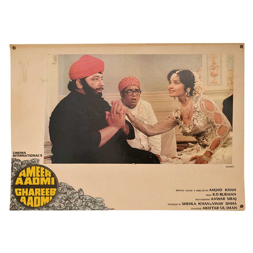 Old bollywood movie poster with Shatrughan Sinha and Zeenat Aman in the lead role. The poster is from a 1930 movie Ameer Aadmi Ghareeb Aadmi directed by Amjad Khan.These posters were used for promotional purposes.
