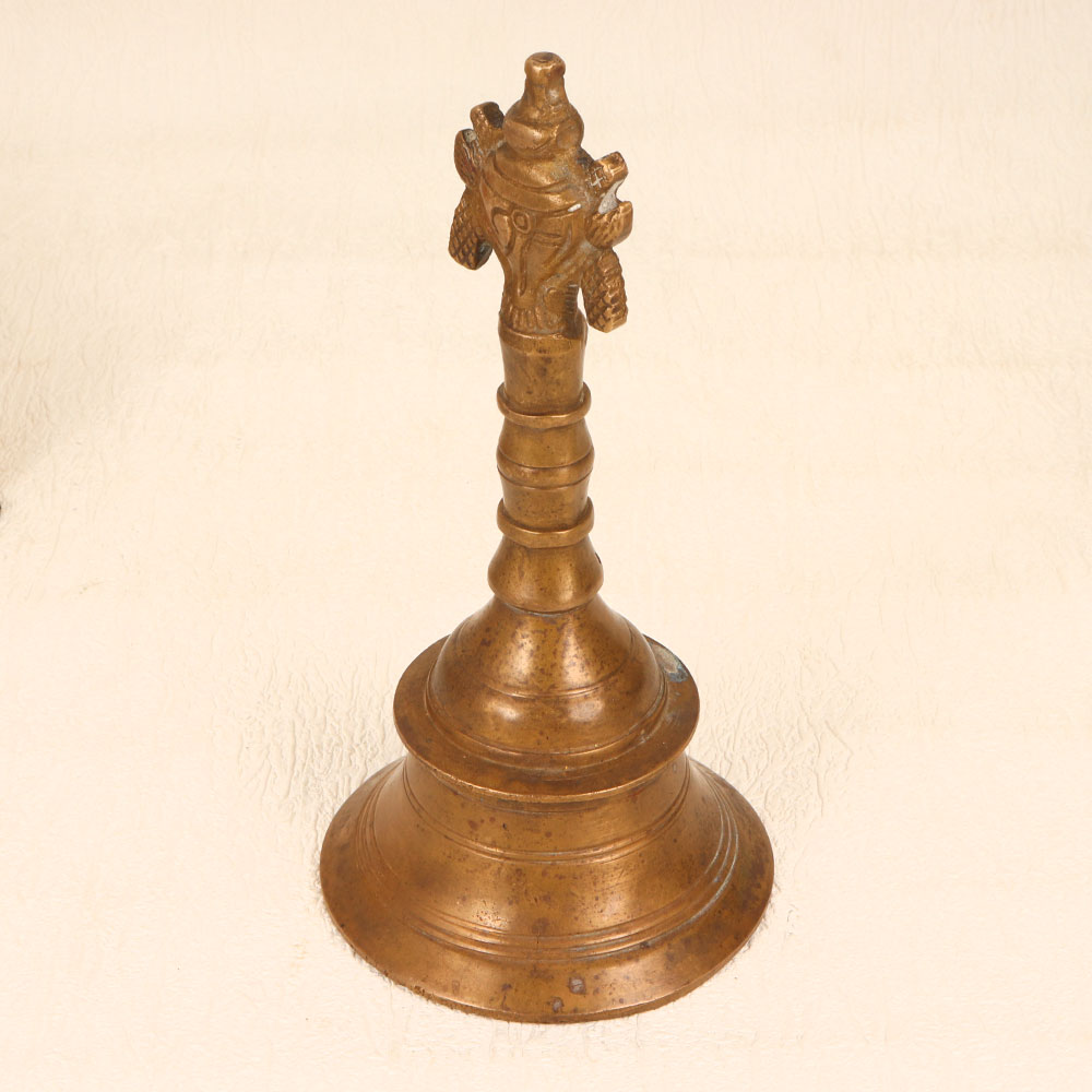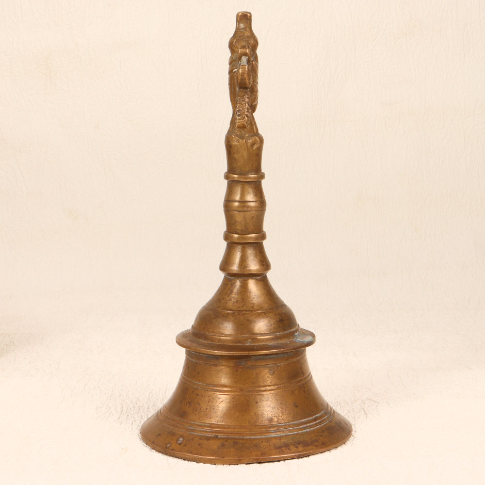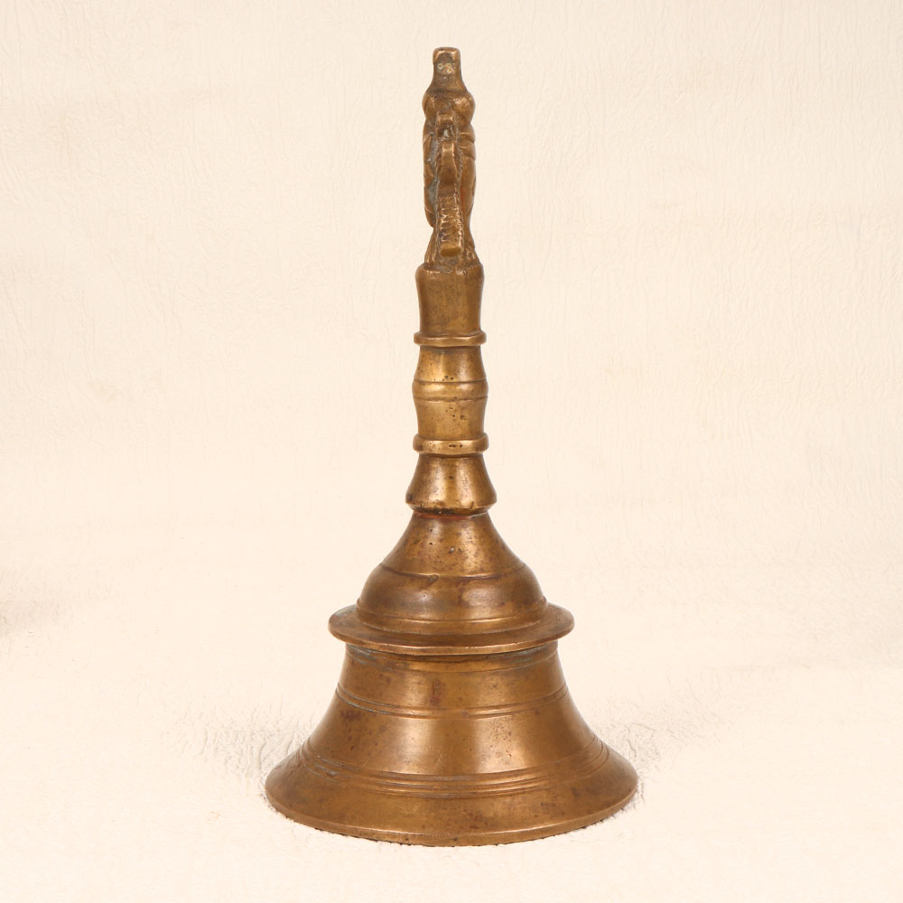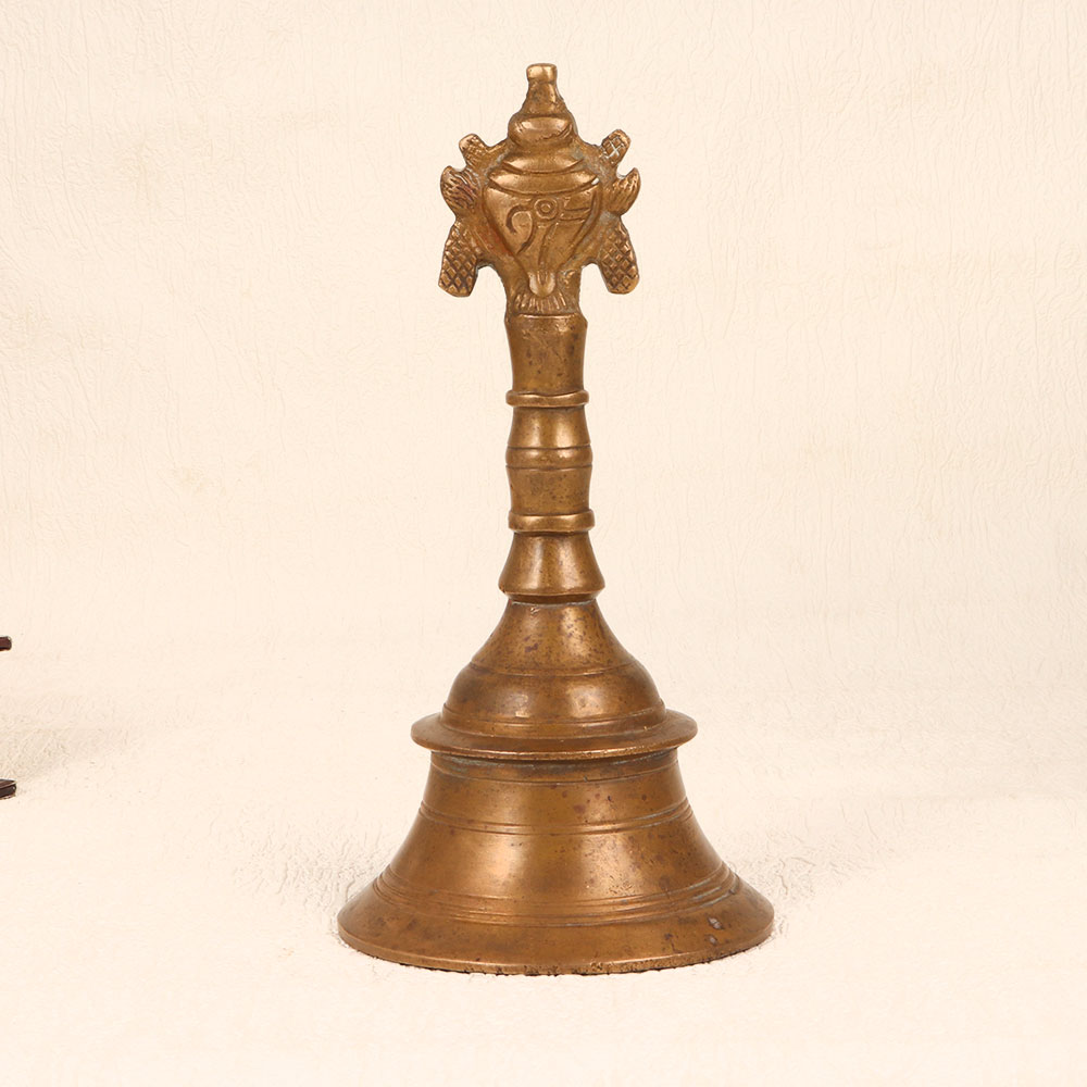 Buy a Vintage Bell Metal Prayer Bell online from our website and get a hassle free delivery at your doorstep. Crafted by talented Indian artisans using traditional techniques, this timeless piece is a testament to the artistry and devotion of the craftsmen from the region. The bell, made from premium-quality bell metal, resonates with a melodious and soul-soothing chime that enhances the ambiance during prayer. With its antique brown finish, the prayer bell exudes a warm, rustic charm, adding a touch of antiquity to any space. The meticulously handmade design incorporates intricate detailing, making it a unique addition to your home, office, restaurant, hotel, or cafe prayer room. Beyond its religious significance, this bell serves as a captivating decorative item, perfect for enthusiasts looking to augment their vintage collection. Versatile and thoughtful, this prayer bell makes an ideal gift for your family, friends or relatives on special, festive, or auspicious occasions.