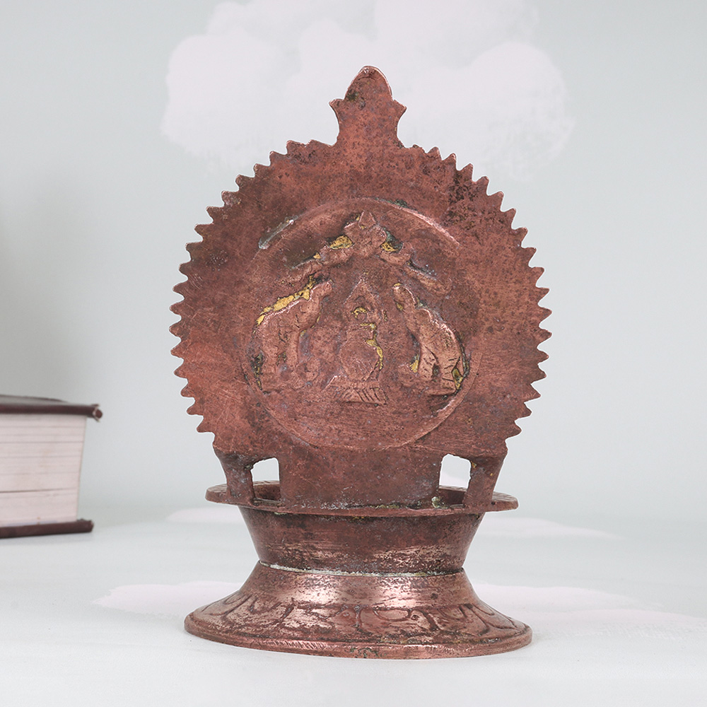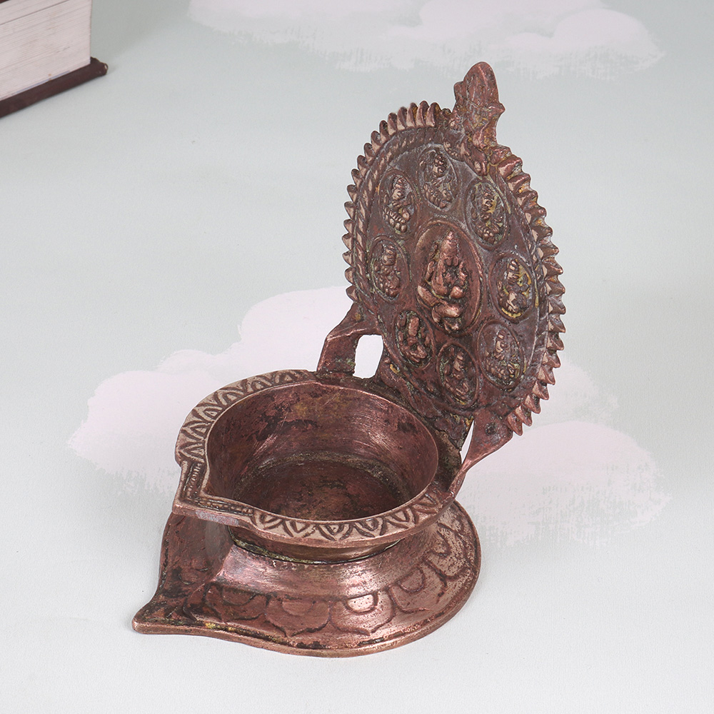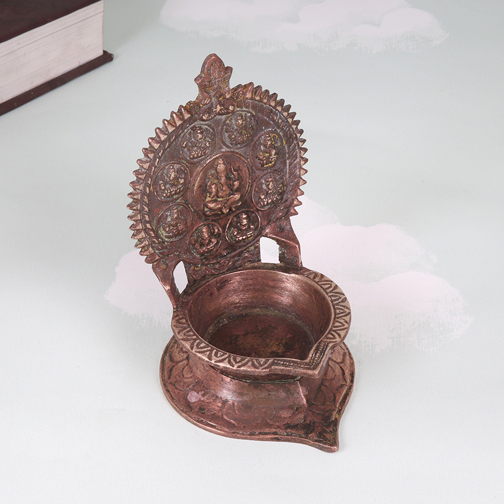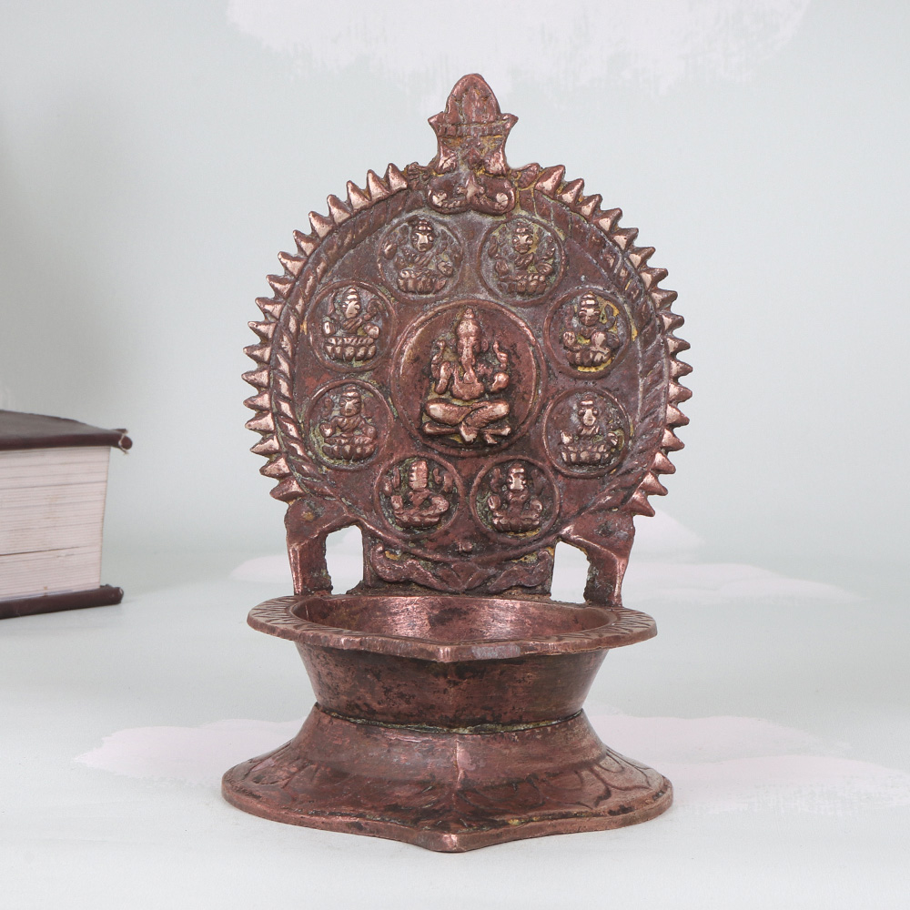 Bring the blessings of the Goddess Lakshmi into your home with this exquisite brass oil lamp. Featuring the iconic Gaja Lakshmi design - the goddess seated atop her elephant mount - this lamp is a powerful symbol of prosperity, abundance, and divine protection. Crafted with exceptional attention to detail, the Gaja Lakshmi oil lamp will captivate and inspire you during your daily rituals and meditation practice. Light the wick and let the gentle flickering flames transport you to a state of deeper calm and clarity, as you connect with the divine feminine energies. The clean-burning oil creates a soft, mesmerizing glow, filling your sacred space with a warm, soothing ambiance. Whether placed on your altar, mantelpiece, or side table, this stunning brass lamp will become a treasured centerpiece, radiating positive energy throughout your home. Its classic Indian art design makes it a beautiful addition to any décor, from modern minimalist to traditional. Treat yourself or a loved one to this exquisite piece of South Indian craftsmanship. The Gaja Lakshmi oil lamp will inspire your spiritual journey, while elevating the atmosphere of any room. Experience the timeless allure of this brass lamp and invite prosperity, abundance, and enlightenment into your life.