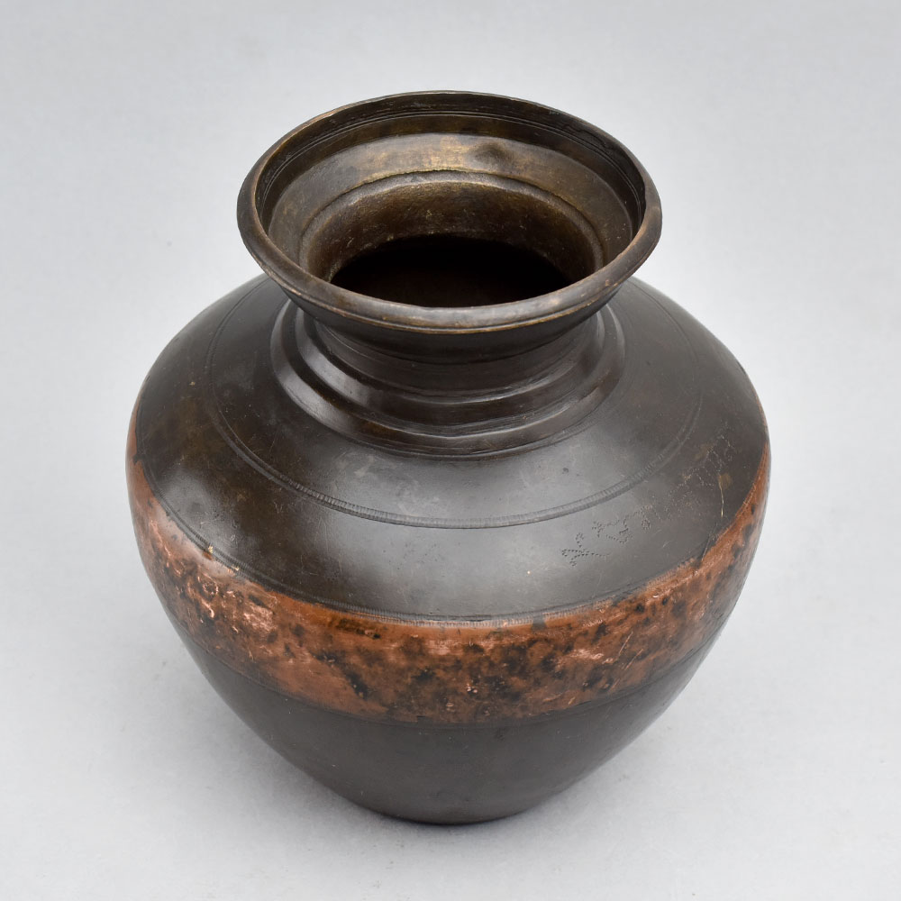 Discover the enchanting artistry of the Himalayas with this exquisite holy water pot. Crafted from a harmonious blend of brass and copper, this one-of-a-kind vessel radiates spiritual energy and timeless elegance. Handmade using traditional Himalayan metalworking techniques Dual metal design symbolizes the union of earth and fire elements Versatile for use in puja ceremonies, home decor, or thoughtful gifts Antique, vintage finish gives it an heirloom-quality aesthetic This holy water pot is more than just a functional piece - it's a work of art that can transform your sacred rituals and home environment. Infuse your space with the rich cultural heritage of the Himalayas and let it become a cherished centerpiece that inspires reverence and mindfulness. Whether you're looking to elevate your puja routine or seeking a distinctive decorative accent, this Himalayan-inspired vessel will captivate with its beauty and craftsmanship. Embrace the timeless allure of this holy water pot and let it become a treasured part of your spiritual practice or home.