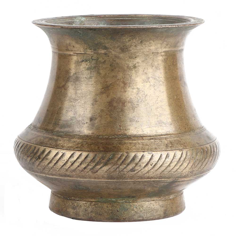 This charming South-Indian style Holy water pot with lines with carving big is a perfect fit for any household. It can be used as decorative art or for storing drinking water. Brass releases specific ions into the latter to make it healthy and safe. You can choose to display this Holy water pot with lines carving big in your living room spaces or accentuating your kitchen decor.