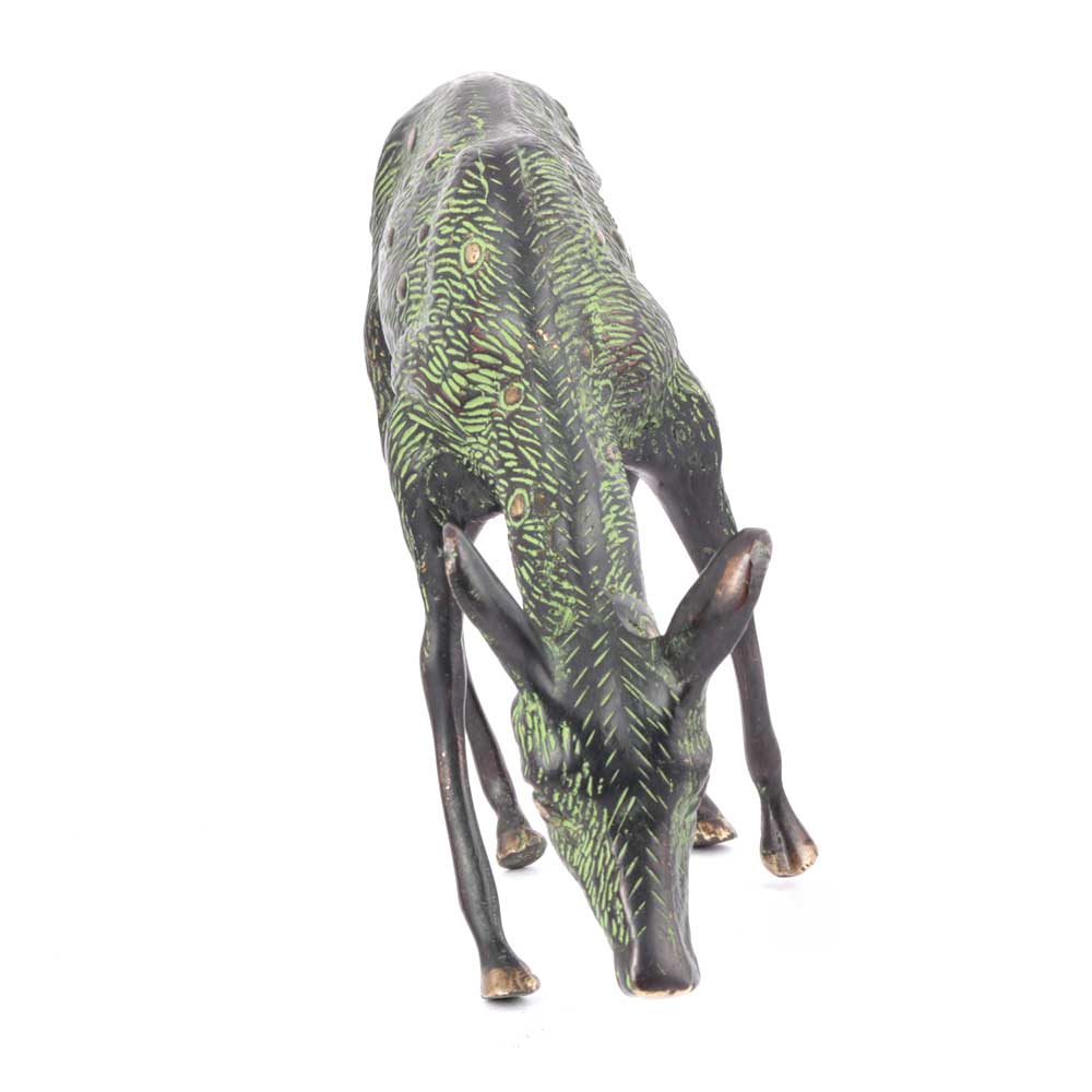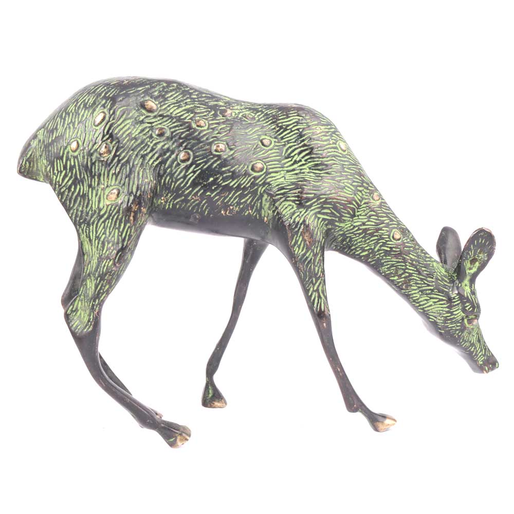 Handmade a Very Charming Solid Brass Feeding Deer. The Deer is a Wonderful Large Impressive Size and has Been Well Cast with Great Detailing. It is in Excellent Condition with Beautiful Deep Bronze Patinated Surface Tones.