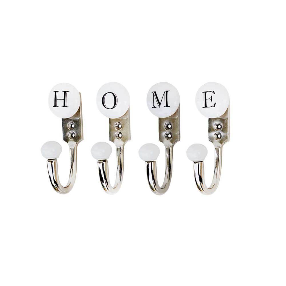 HOME white and black alphabet hooks (combo pack). When put on wall or cabinet it is an art in itself. This hook is strong enough to hold your keys, tea cups, hand towels, cloths etc.