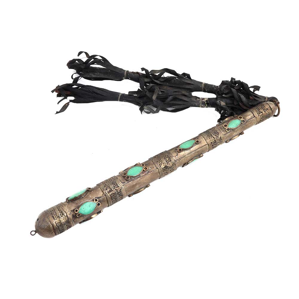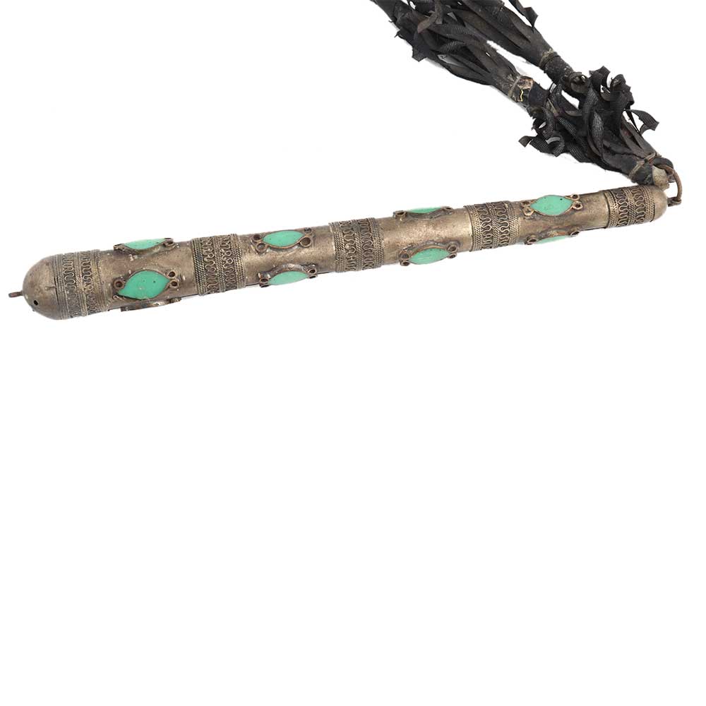 White Metal allover on stick with solid molded comfortable handle with Islamic Horse Hunter with enamel work for training dogs/for horse riding crop full length of the stick his whip is constructed of braided black suede leather and a leather strap. horse racing and exercising, Gift for near and dear ones.