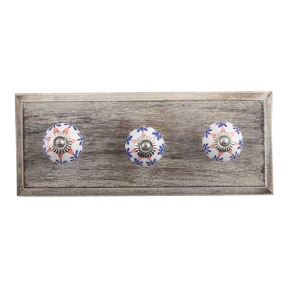 Hybiscus Red Flower Ceramic Wooden Hook. A Perfect Complement to the Soft Tone of the Wood are these White Traditional Hat & Coat Hook Made of Genuine Porcelain and Brass. It can be use to Hang Jewellery, Leashes, Towels, Scarves, Light Weight Sweaters, Caps Etc.