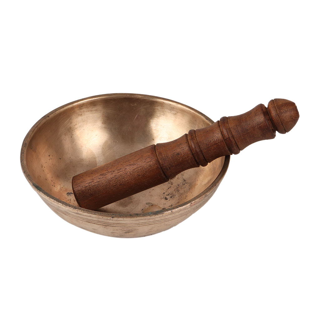 This exquisite singing bowl from a Tibetan monastery is a true gem for any vintage collection. Made of authentic bell metal and accompanied by a wooden mallet, it emanates a rich and resonant sound that transports you to the serene realms of the Himalayas. The craftsmanship is awe-inspiring, with intricate etchings on the surface adding to its aesthetic appeal. Whether used for meditation, sound therapy, or simply as a decorative piece, this singing bowl is a treasure that reflects the ancient art and culture of Tibet. It is an incredible gift for special, festive and auspicious occasions for your family, friends and relatives.