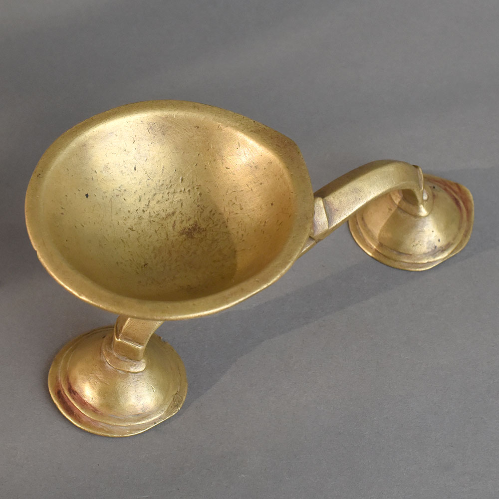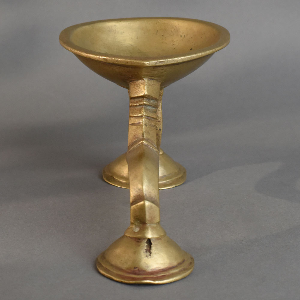 - Antique brass aarti oil lamp with wide deep bowl