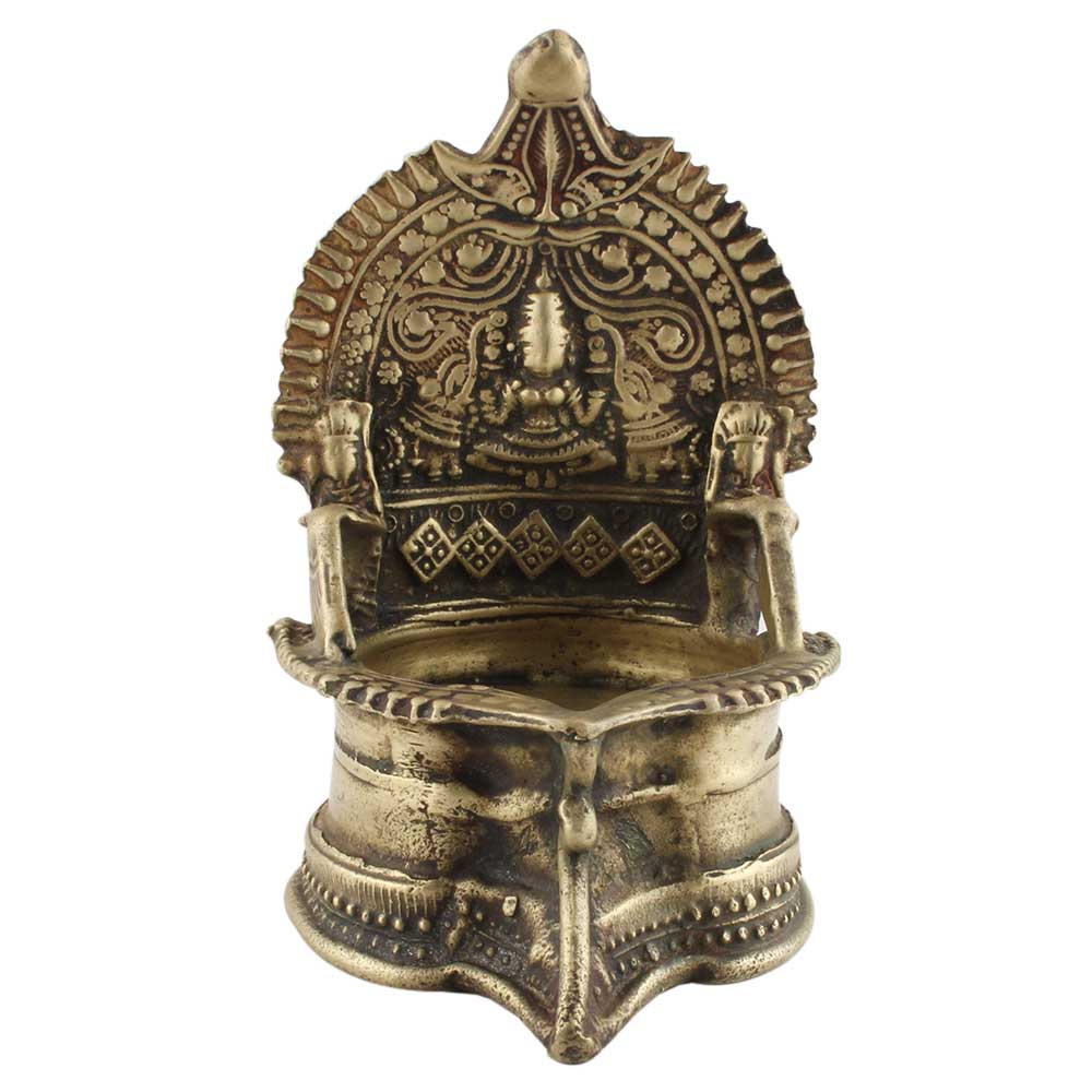 Handmade brass oil Lamp is made by lost wax process by tribal craftsmen. It Depicts Goddess Maha Lakshmi. Adds Spiritual Flavor to You Decor. Vegetable Oil, Mustard Oil or Desi Ghee can be Use to Light the Lamp with Cotton Wicks.