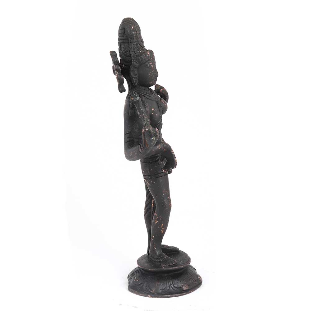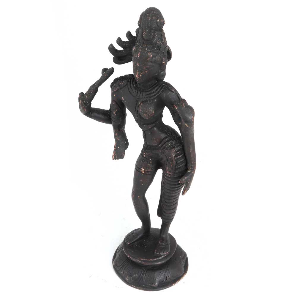 Indian Bass Statue Of A Lady Dancer is adorned with jewelery and beautiful clothes she stands with the on a raised platform Place it on the display or used as a gift for friends and relatives .