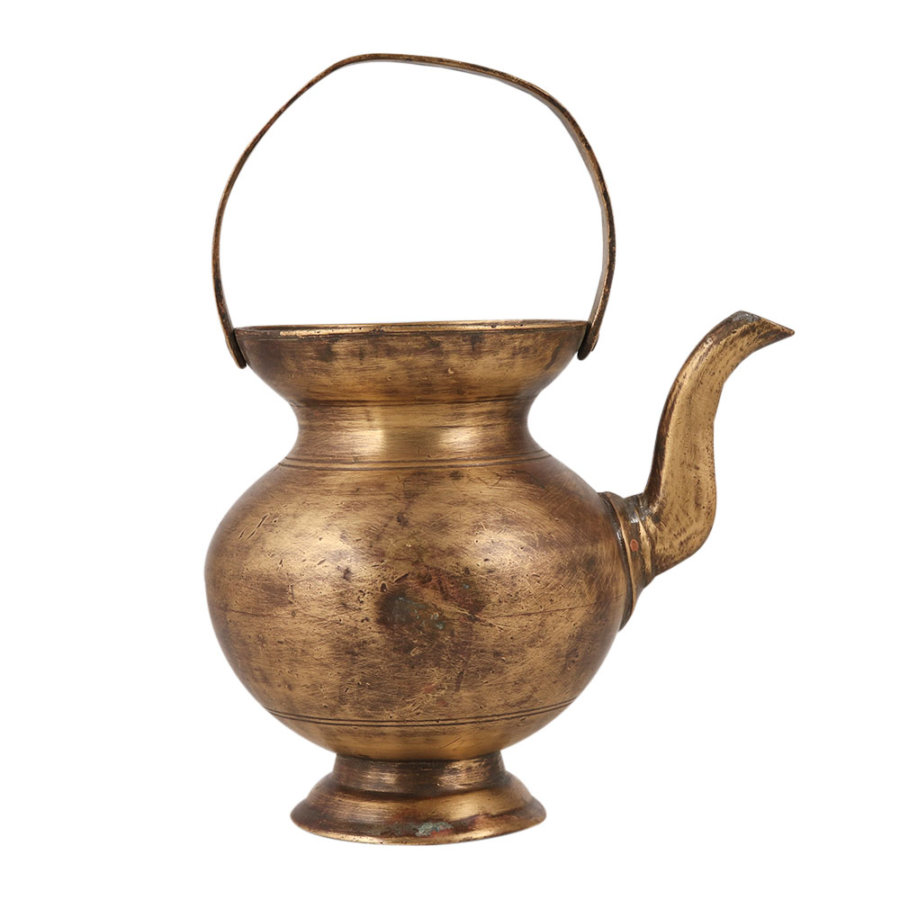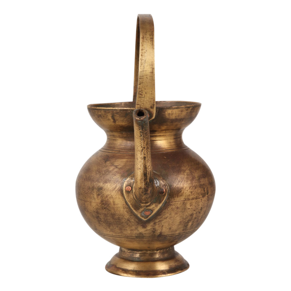 The brass Kamandal is a sacred vessel with a profound religious significance. Crafted by skilled artisans from India, this exquisite Kamandal bears an elegant brown finish, adding to its charm and vintage appeal. It is fashioned from high-quality brass, ensuring durability and authenticity. Traditionally, the Kamandal is associated with saints and priests in temples, serving as a vessel for pouring holy water during sacred rituals and ceremonies. Its unique design features a spout and a handle on the top, allowing for precise pouring of the sanctified water. This auspicious Kamandal also finds its purpose in temple settings, where it is used to wash hands before partaking in Prasad, the divine offering. Beyond its spiritual significance, this brass Kamandal is an excellent addition to any vintage collection. It also serves as a thoughtful and memorable gift for your loved ones on special or festive occasions, symbolizing blessings, purity, and devotion.