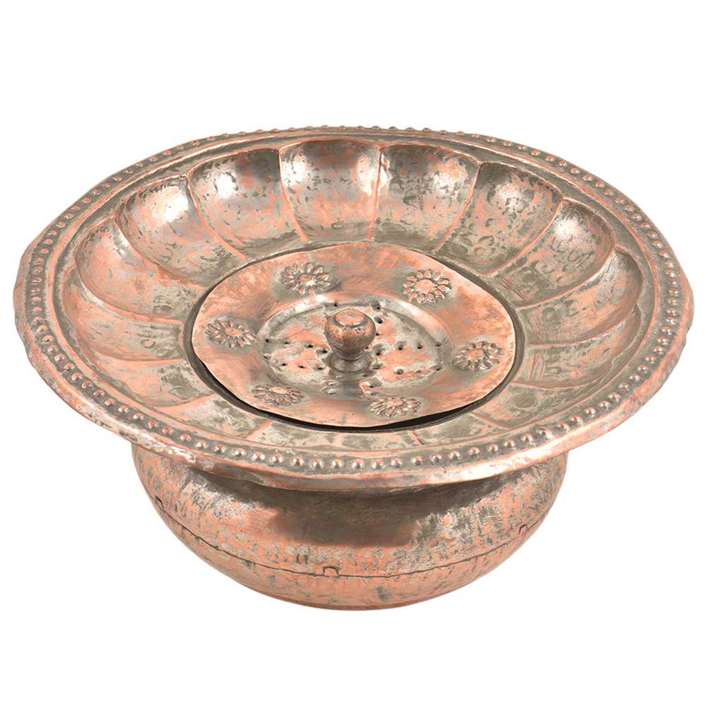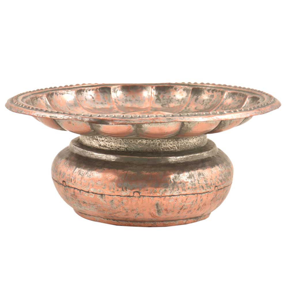 Handmade Copper Ugal-Daa (Spittoon) is a receptacle made for spitting into, especially by users of chewing and dipping tobacco. It can also be used for decoration purposes or as a tray stand. It is fully decorated with repousse or embossed floral design on the entire Ugal daan . It can also be used as.