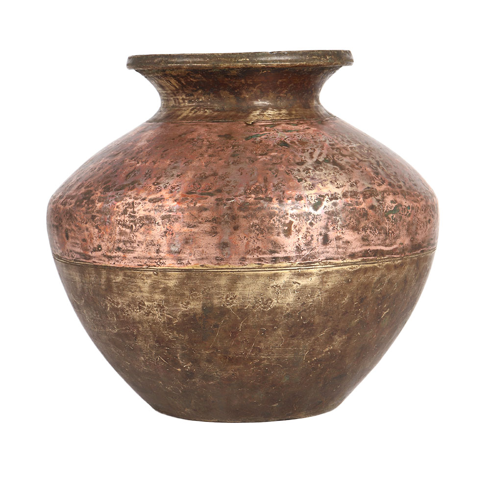 Buy a handmade Ganga Jamuna water pot online from our website to get hassle-free delivery right at your doorstep. It has been handcrafted by highly skilled and experienced Indian artisans from Himachal Pradesh using high quality brass and copper. The water pots made of brass and copper are known as Ganga Jamuna pots in India. The antique brown finish and sturdy appearance make them eye-catching for decor and vintage art collection. Display this unique pot in an exhibition or museum and it will be a centre of attraction. It is made of brass and carved with copper in the upper half of the pot. An auspicious gift for any special, festive and auspicious occasion for your loved ones and relatives.