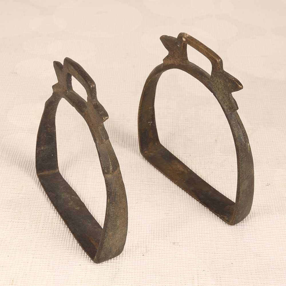 Add a touch of the wild frontier to your riding gear with this eye-catching pair of antique brass stirrups for horse saddles. Feel like the star of your own Western adventure every time you saddle up with these distinctive brass stirrups. Their chic antique look channels the iconic spirit of the American cowboy, while the sturdy brass build provides lasting performance ride after ride. Give your trusty horse the royal treatment he deserves while showing off your exceptional taste in equine accessories. An excellent gift for the Western enthusiast looking to make each ride a stylish one.