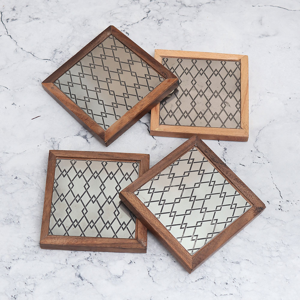 With their sturdy wooden construction and metal details, these coasters are both durable and stylish. The metal finish adds a sleek, modern touch, while the wooden base provides long-lasting functionality.