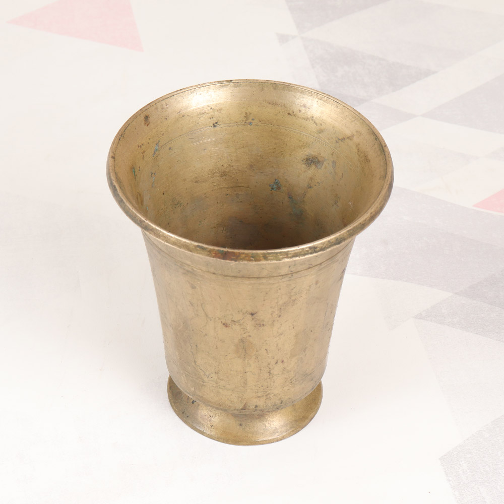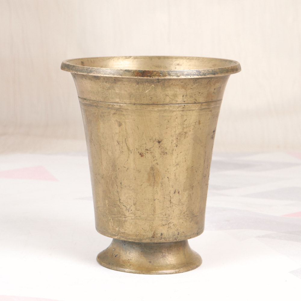 Infuse your spiritual practice with the timeless elegance of this exquisite brass holy water cup. Crafted by skilled artisans who have honed their craft over generations, this cup is a testament to the rich cultural heritage of South India. The ornate engravings that adorn its surface pay homage to the region's iconic design motifs, imbuing each use with a sense of reverence and connection to the divine. Whether you're seeking to deepen your personal practice or looking to gift a meaningful token of South Asian spirituality, this holy water cup is a must-have. Its versatile design allows it to seamlessly blend into any home altar or decor, adding a touch of cultural sophistication. Embrace the ancient wisdom of this revered tradition and let this captivating vessel guide you on your spiritual journey, elevating your rituals with its timeless beauty.