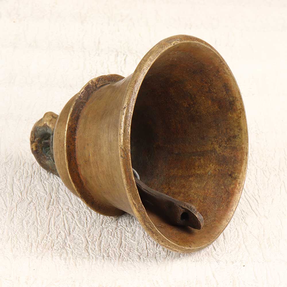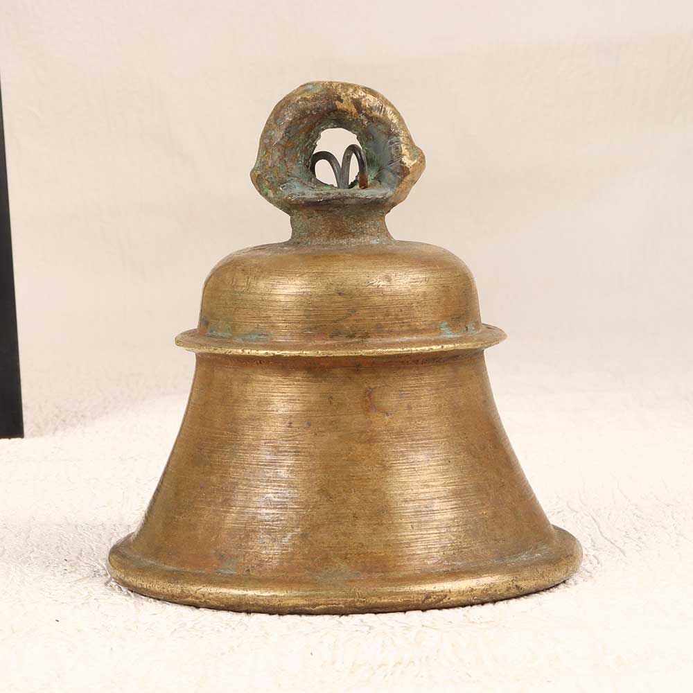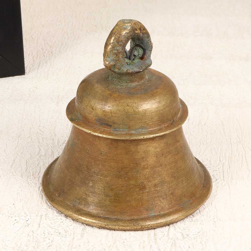 Channel the tranquility of an ancient temple with this vintage bell metal temple bell from India's Himachal Pradesh region. Featuring a timeless plain design and earthy brown finish, this bell creates a rich, meditative tone when rung gently by hand. In Buddhist tradition, the sound of a bell is believed to promote mindfulness and inner reflection. Hang this temple bell in your home to mark moments of meditation or relaxation. Let its soothing tone wash over you, helping to calm your mind and transport you to a peaceful state. With its traditional bell metal casting and vintage styling, this temple bell adds spiritual ambiance to any room. For anyone looking to infuse their home with serenity and meaning, this resonant bell is an excellent choice. Bring the aura of an ancient monastery to your space with this beautifully simple yet powerfully tranquil bell.