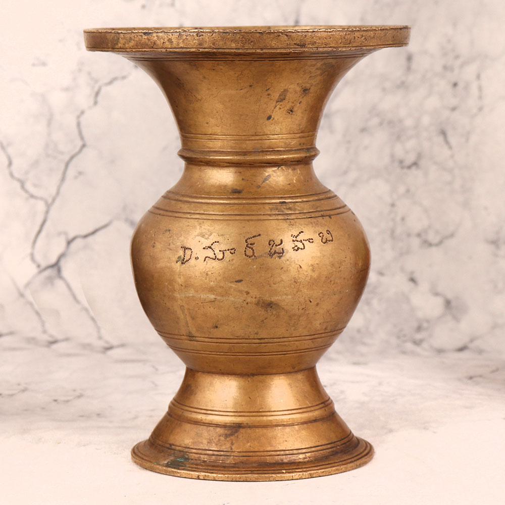 Enhance your home decor with our Vintage Brass Flower Pot in an enchanting antique brown finish. Each piece is handcrafted by talented Indian artisans, drawing upon centuries of tradition in South Indian Artistry. Crafted from the finest quality brass, this exquisite flower pot embodies the spirit of heritage and authenticity. This versatile piece is a true fusion of form and function. It makes a captivating addition to any setting, whether at home, in the office, a restaurant, hotel, cafe, or shop. Its intricate design and antique brown finish lend a touch of sophistication to any space, making it a perfect choice for decoration. Not just a visual delight, this flower pot is fully functional and can hold your favourite blooms or plants, bringing nature's beauty indoors. It also serves as a remarkable addition to vintage collections, a testament to the rich artistic traditions of India. For those seeking a thoughtful gift, our Vintage Brass Flower Pot is an ideal choice. It's a timeless present for your family, friends or relatives on special, festive, or auspicious occasions, a symbol of enduring craftsmanship and your affection.