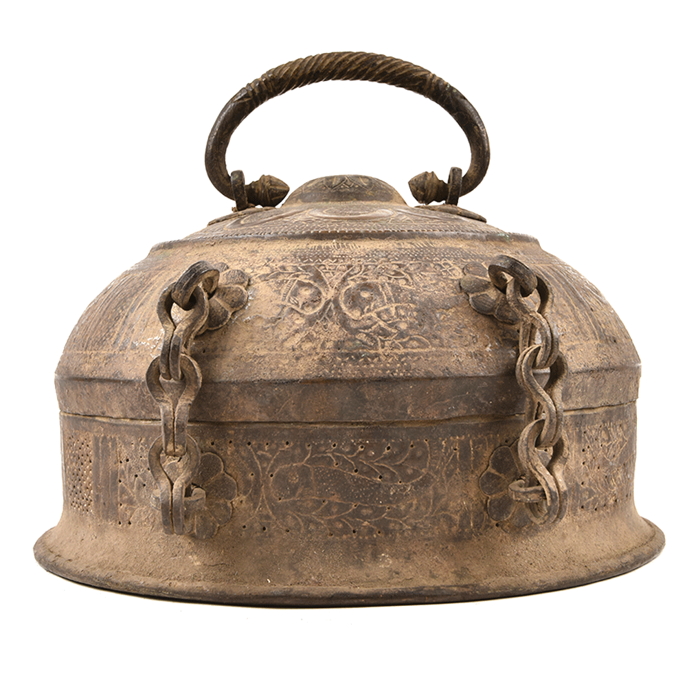 Indian Old Vintage Brass Hand Crafted Engraved Round Storage Box