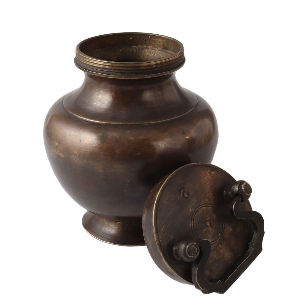 Vintage collectible indian Sturdy brass metal heavy water or milk pot with a unique shape. For your antique-loving loved ones, it makes a great gift. The ladies of the home carry the sacred Kamandalu or Brass stoup with lid and handle to the temple or for puja, filling it with holy water or flowers. Beautiful décor and unique gifts.