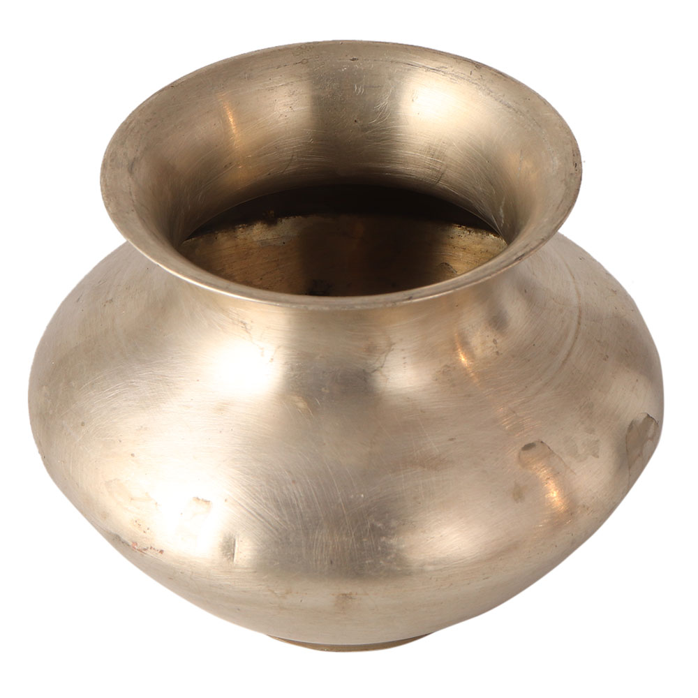 This shiny white metal alloy vessel is carved in northern India using old techniques. It has a simple design yet is an attractive piece for your home and office. You can also use it as an indoor flower pot.