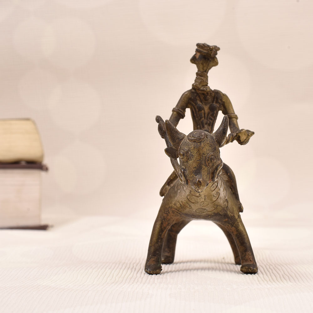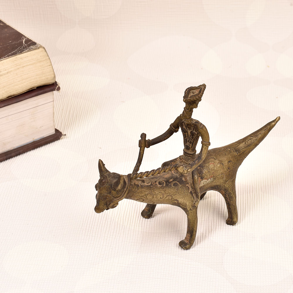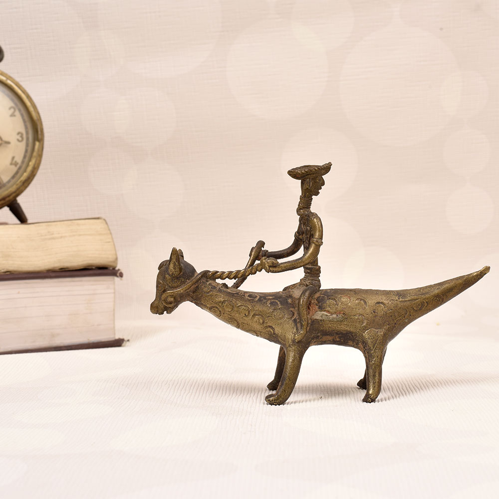 Gaze upon this stunning brass statue and be transported to a world of ancient wisdom and primal power. Crafted with meticulous detail, this piece depicts a magnificent animal with a noble rider upon its back, symbolizing the symbiotic bond between man and beast. This captivating brass statue is more than just a decorative piece - it's a testament to the enduring power of the natural world and the wisdom of ancient civilizations. Invite the spirit of the tribal lands into your home, and let this striking sculpture inspire you to reconnect with the primal forces that shape our world. Display it proudly, and let its timeless allure captivate all who behold it.