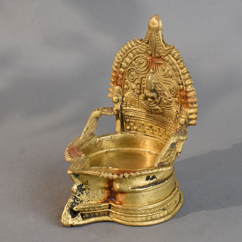 - Handmade brass diya with traditional South Indian temple-inspired design
