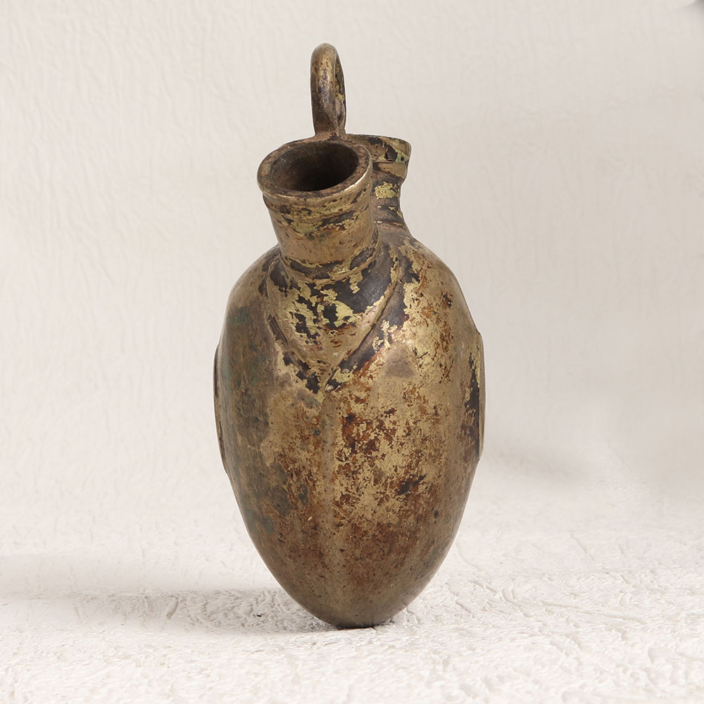 This vintage brass hookah base in the captivating mango shape boasts an antique brown finish. Meticulously handcrafted by talented Indian artisans, this piece is a testament to their unwavering dedication to artistry and precision. Crafted from high-quality brass, this hookah base is more than just a functional item, it's a work of art that seamlessly blends tradition and aesthetics. Its rich, antique brown finish adds an air of authenticity and nostalgia, making it a perfect addition to any space. Versatile and adaptable, this hookah base can grace your home, office, restaurant, hotel, cafe, or shop, instantly elevating the ambiance with its vintage charm. It's a conversation starter, a symbol of elegance, and a timeless decor item that can be proudly showcased in your vintage collection or featured in exhibitions. Consider gifting this exquisite piece to your family, friends or relatives on special, festive, or auspicious occasions. It's a thoughtful gesture that carries the essence of India's rich heritage and artistic finesse, making it a cherished and meaningful present for those close to your heart.